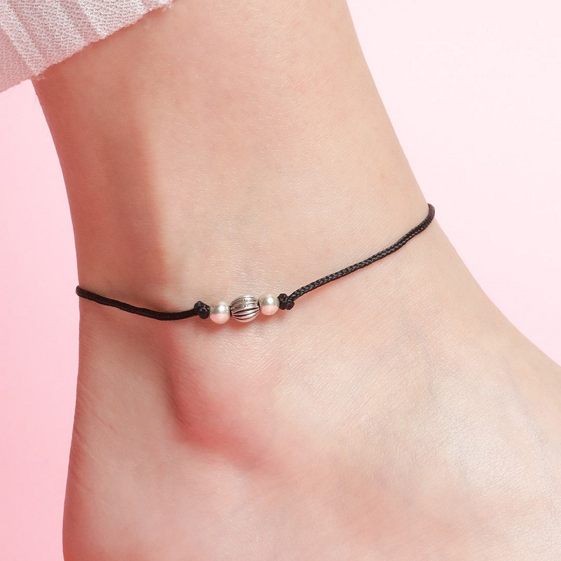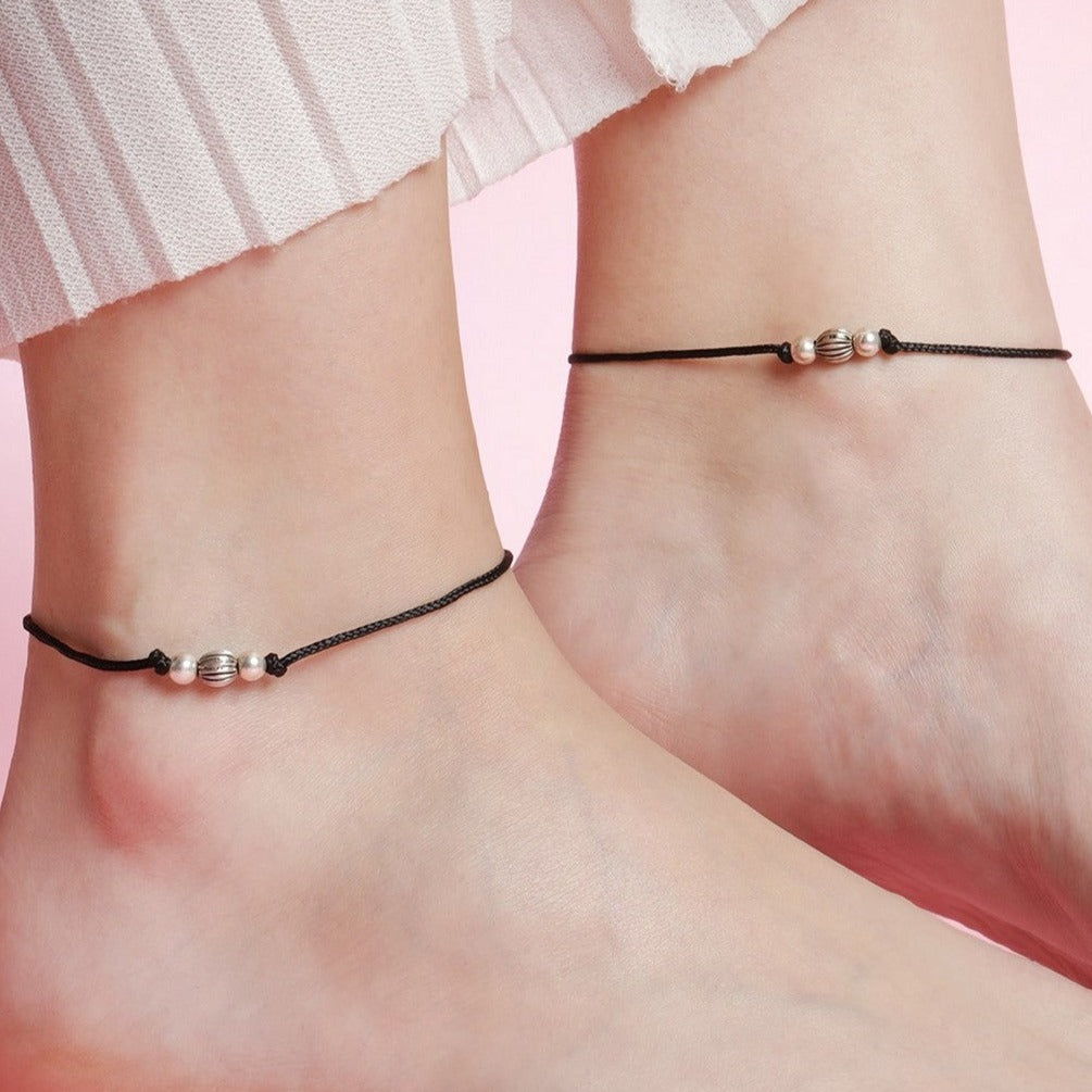 Classic Rhodium Plated Beaded 925 Sterling Sterling Thread Anklet