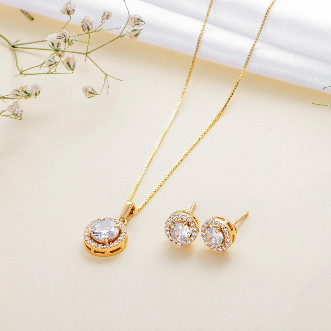 Classic Solitaire Gold Plated 925 Sterling Silver Jewellery Set