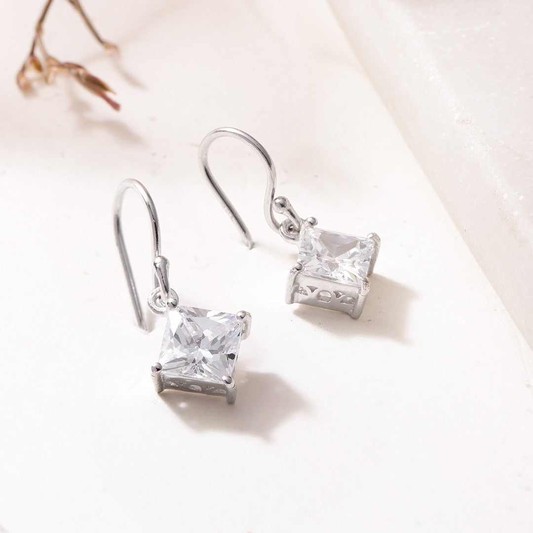 Product Description:- Add a touch of modern elegance to your jewelry collection with our Clear Solitaire Cube Earrings. Crafted from high-quality 925 sterling silver with Rhodium plating, these earrings feature a stunning clear cubic zirconia stone in a unique cube shape. The rhodium plating provides a durable, hypoallergenic, and tarnish-resistant finish, while the secure post and butterfly backings ensure a comfortable and secure fit. Perfect for any occasion, these earrings are sure to turn heads and become a favorite in your jewelry collection.