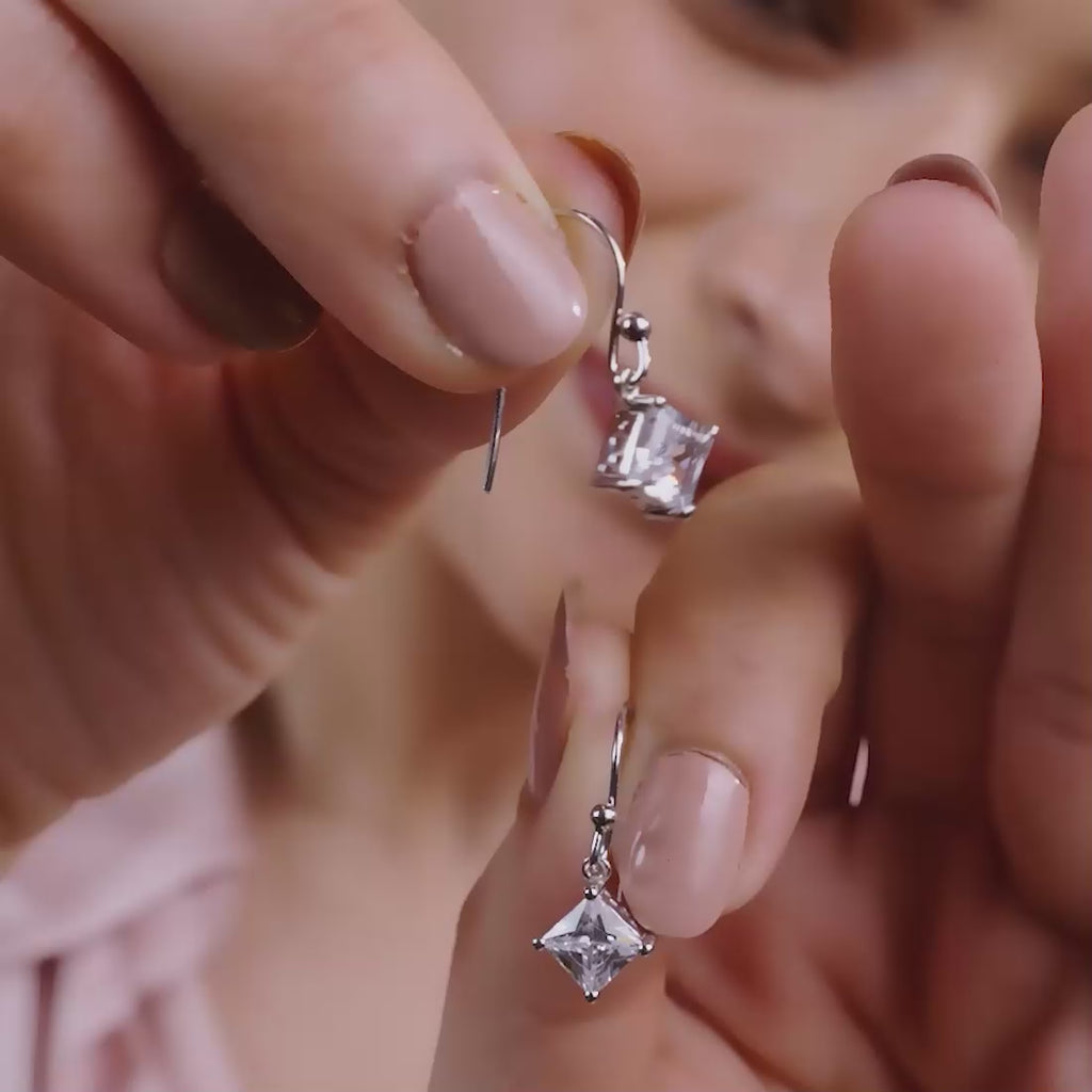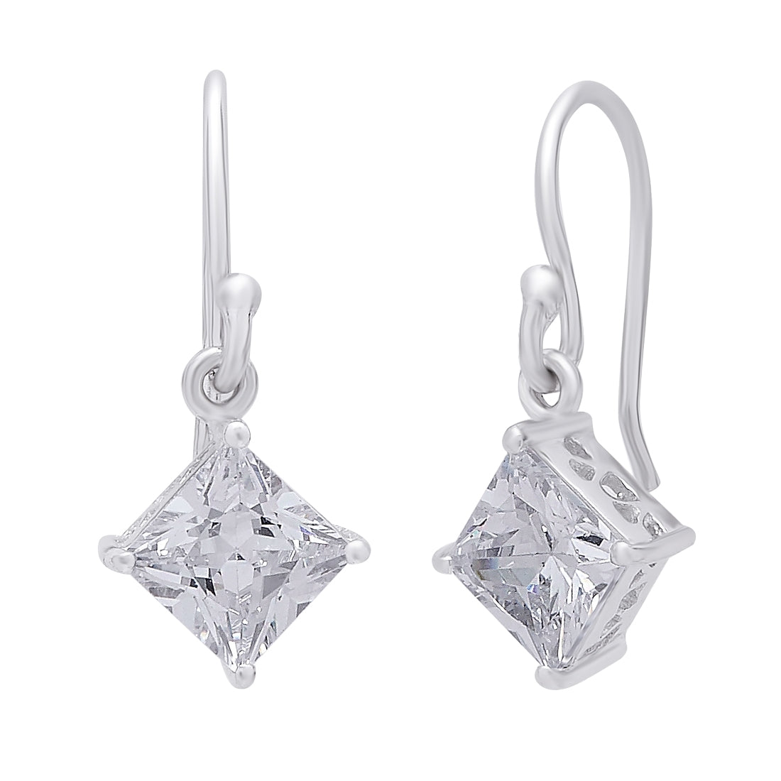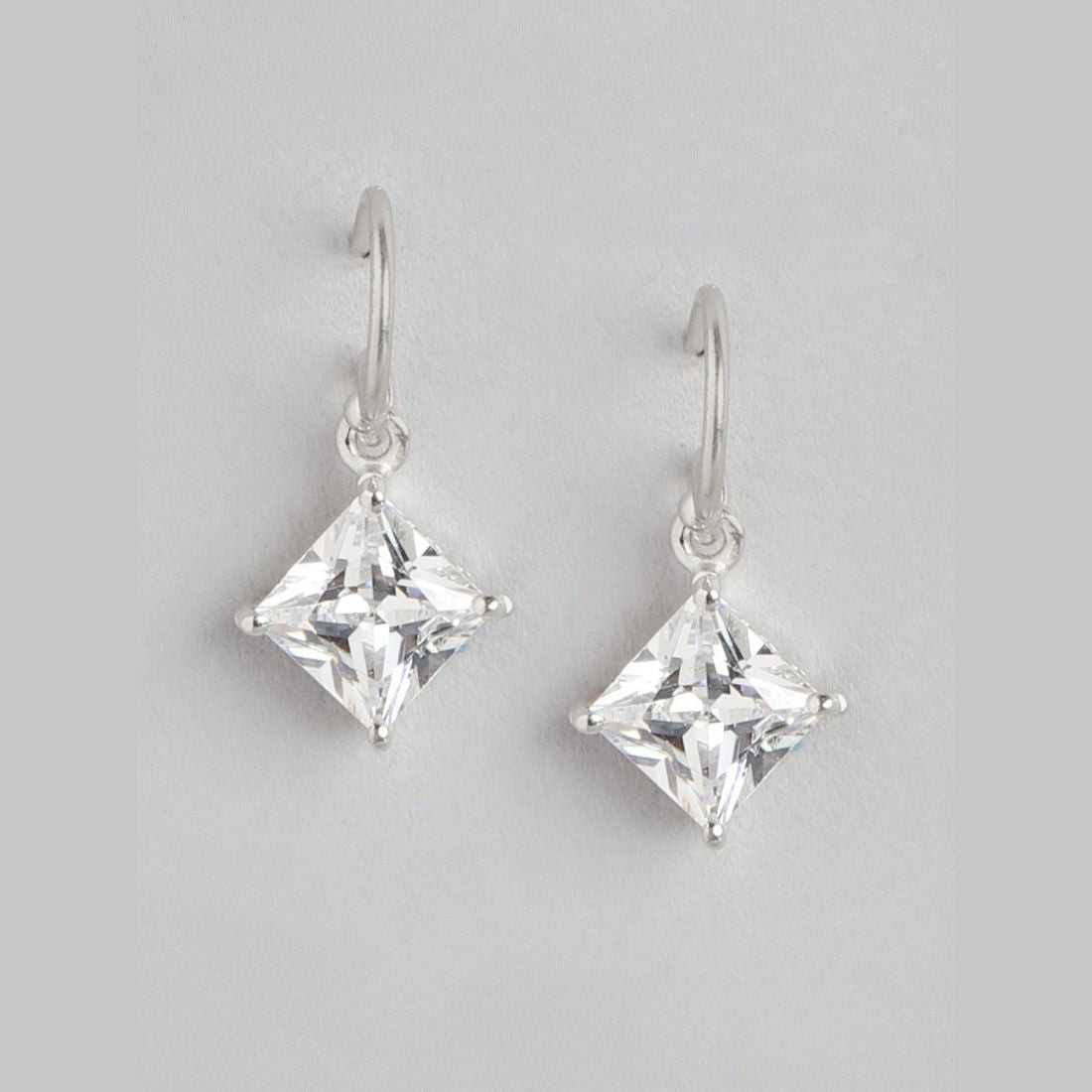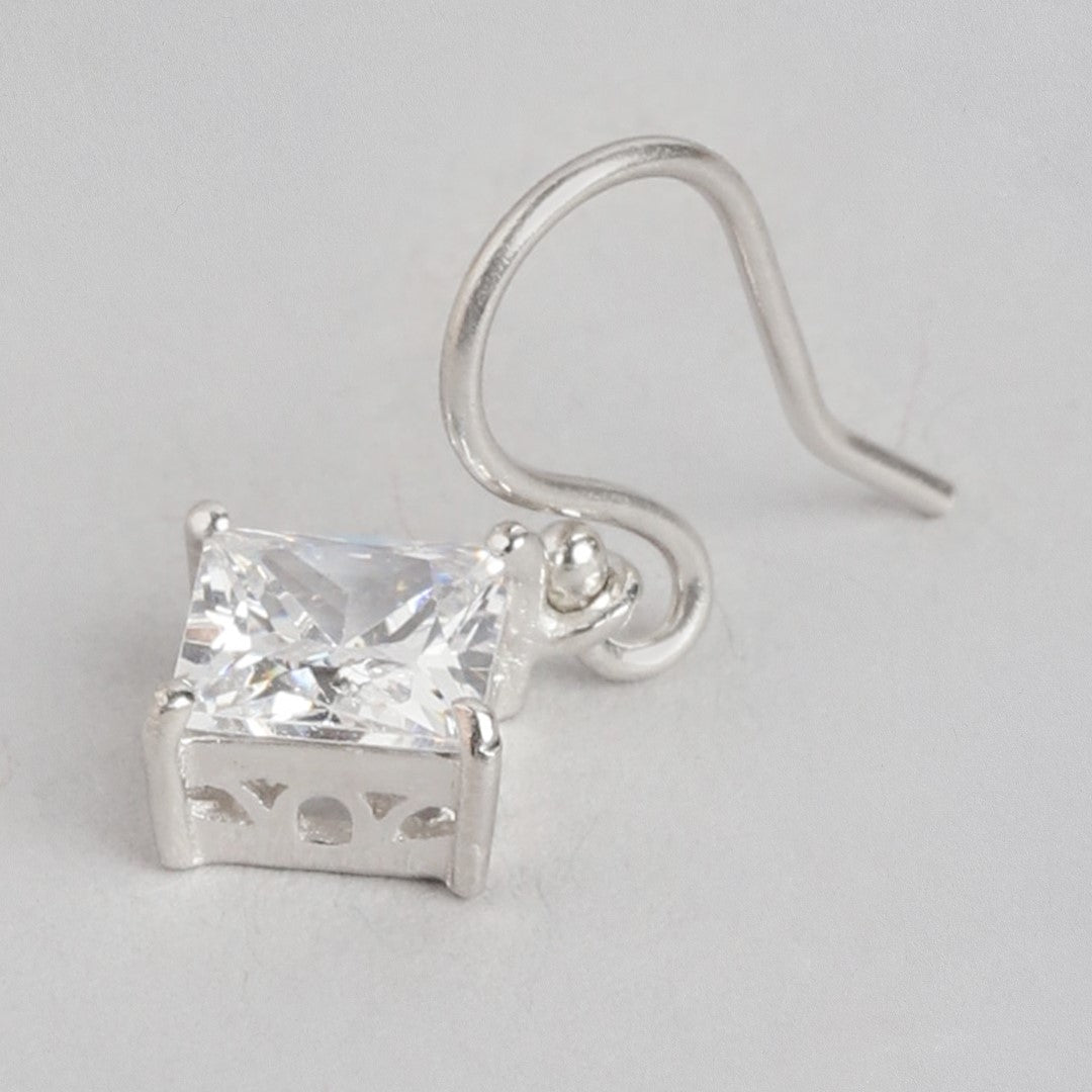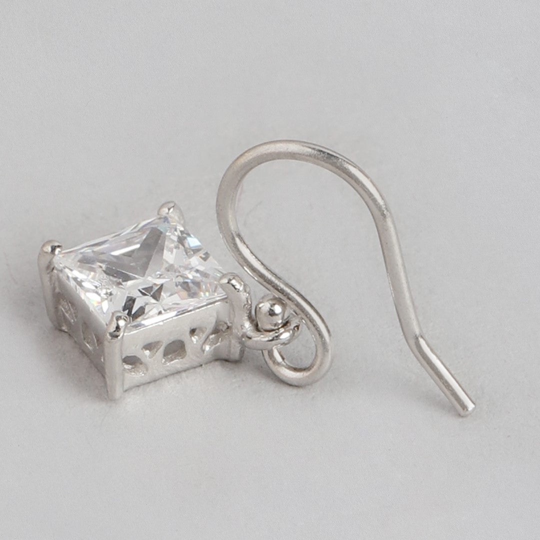 Clear Solitaire Cube Rhodium Plated 925 Sterling Silver Earring