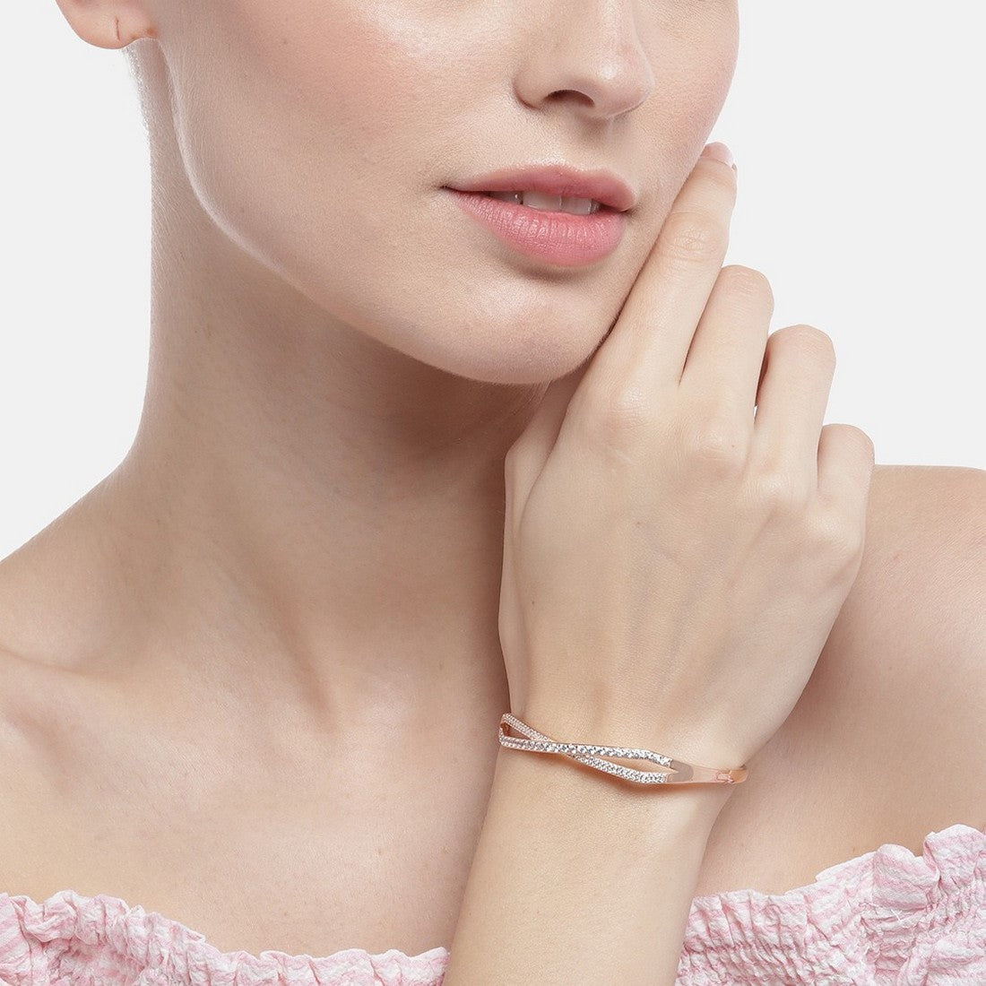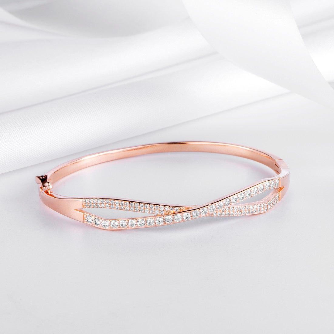 Infinity CZ Rose Gold Plated 925 Sterling Silver Kada Bracelet