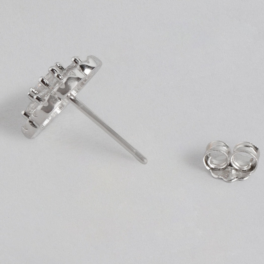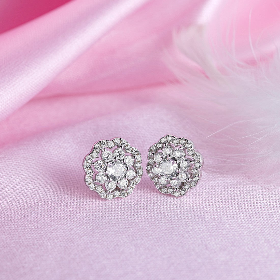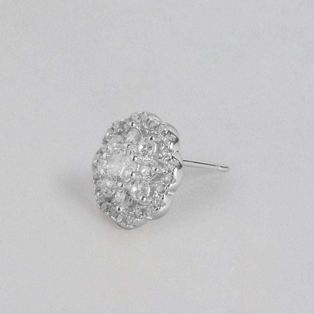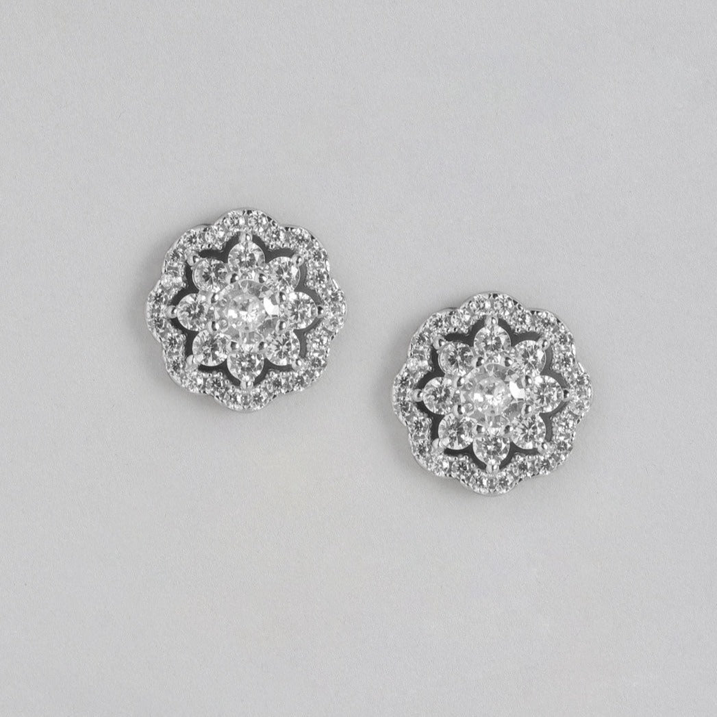 CZ Studded Floral 925 Sterling Silver Stud Earrings