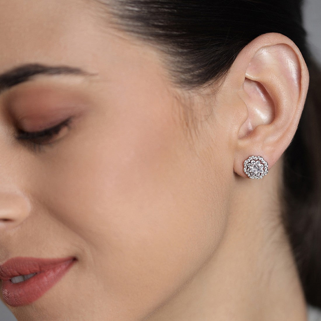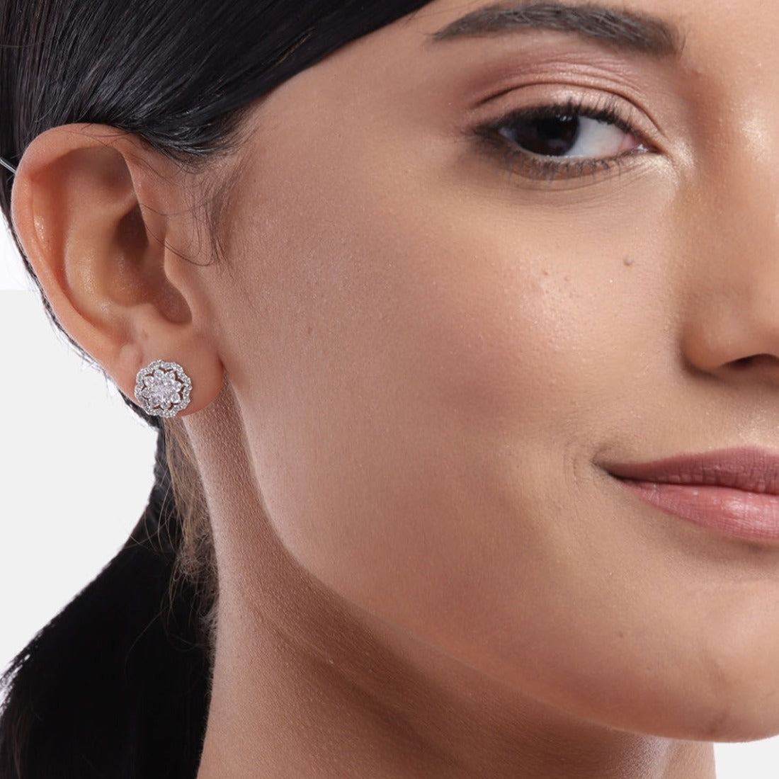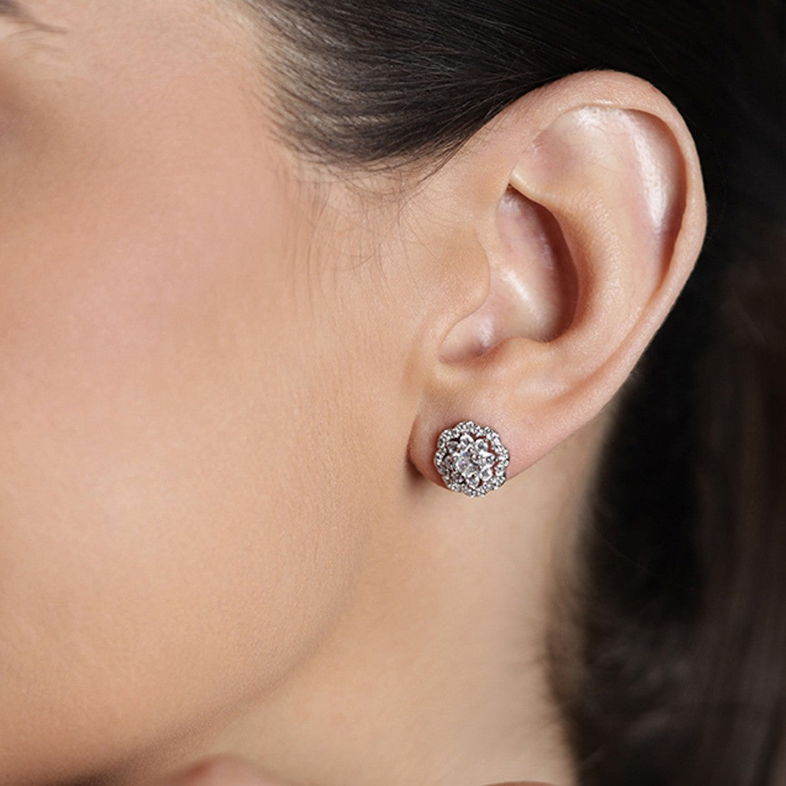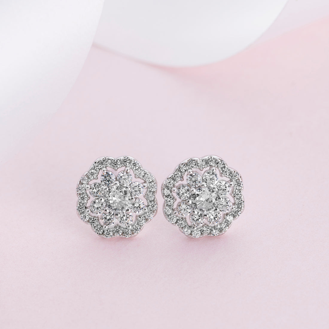 CZ Studded Floral 925 Sterling Silver Stud Earrings