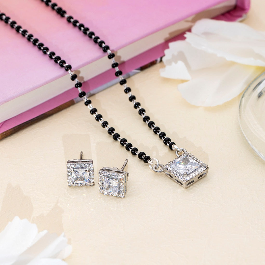 The rhodium plating ensures that the silver will not tarnish or discolor, preserving the shine and beauty of the set for years to come.
