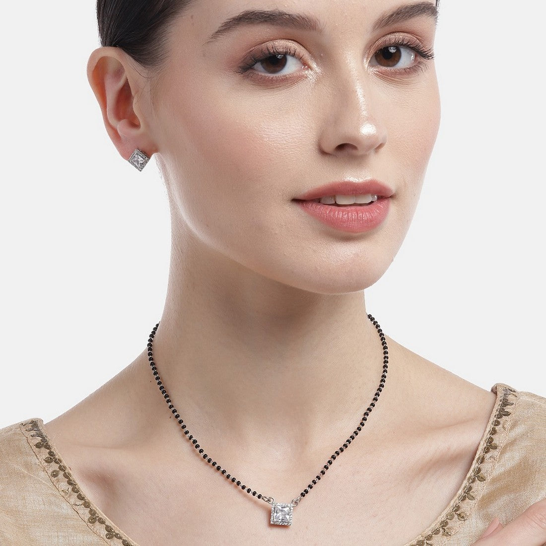 • Set of rose gold Necklace and a pair of rhodium plated Earrings