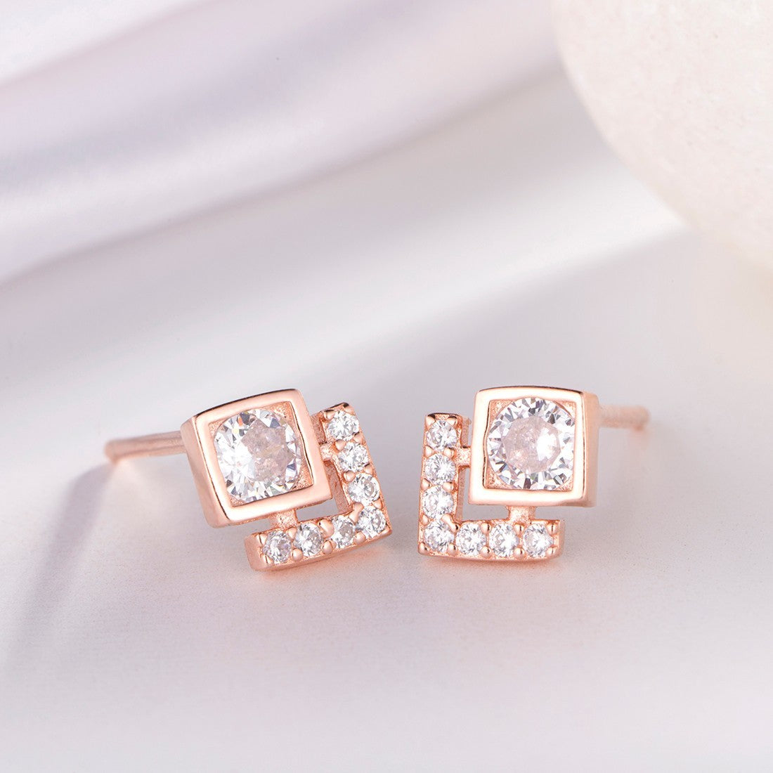 Classy CZ Studded Rose Gold Plated 925 Sterling Silver Stud Earrings