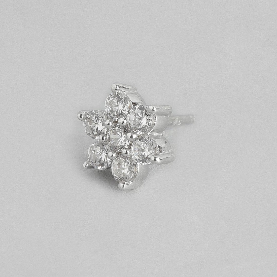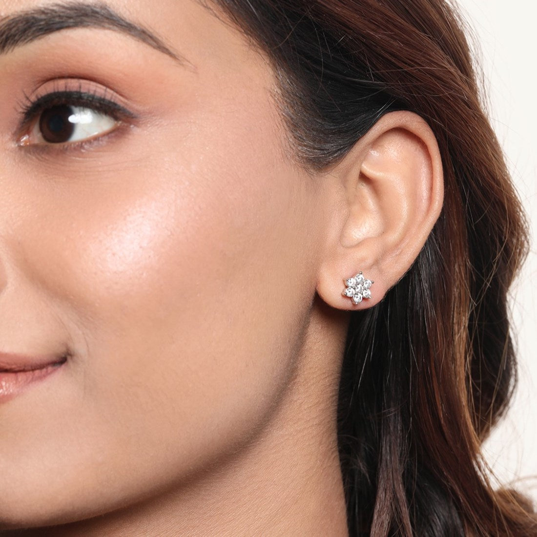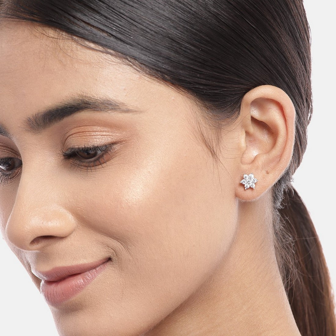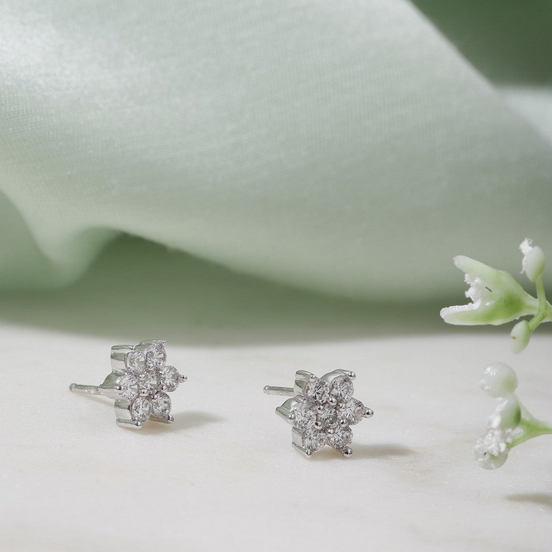 CZ Studded Star Rhodium Plated 925 Sterling Silver Studs