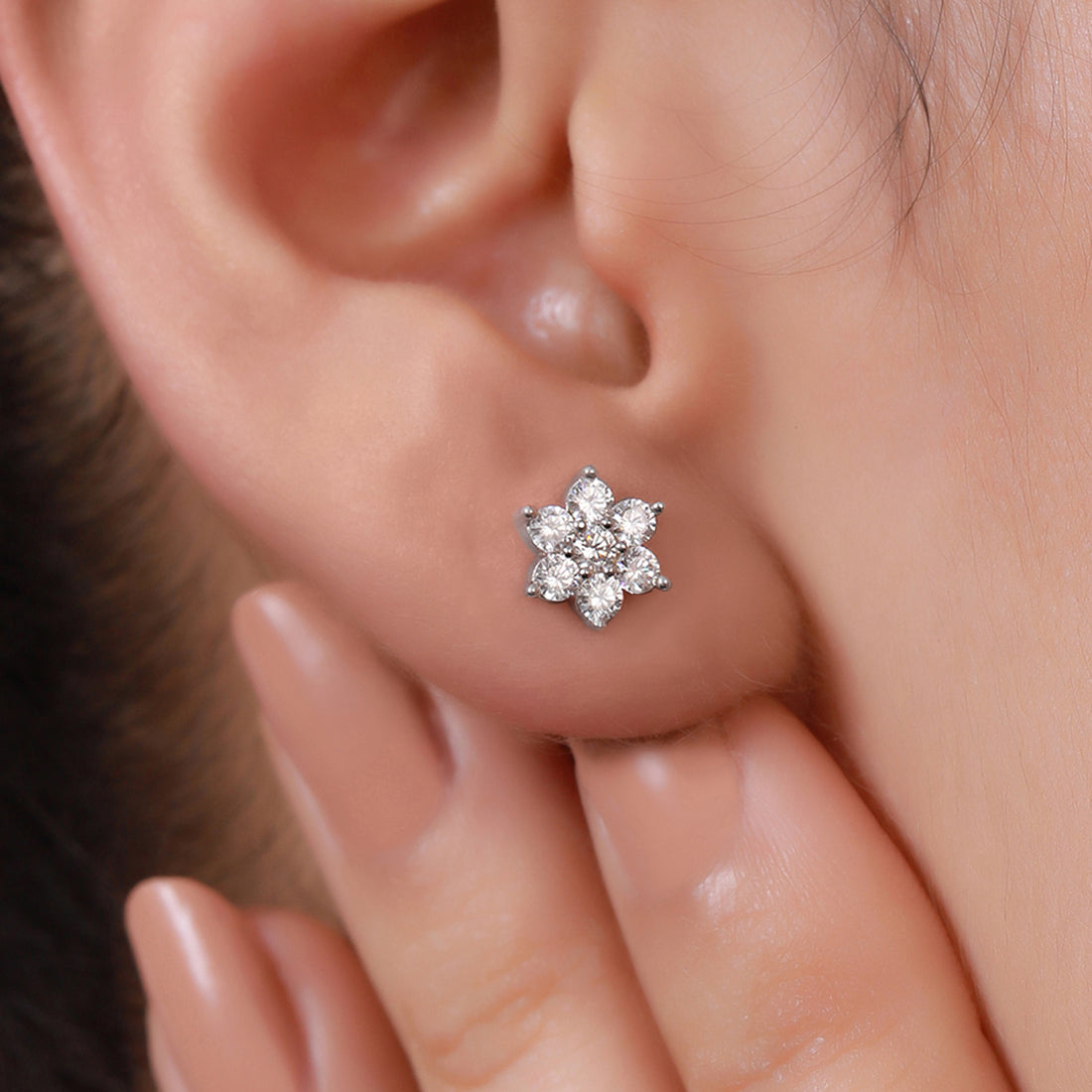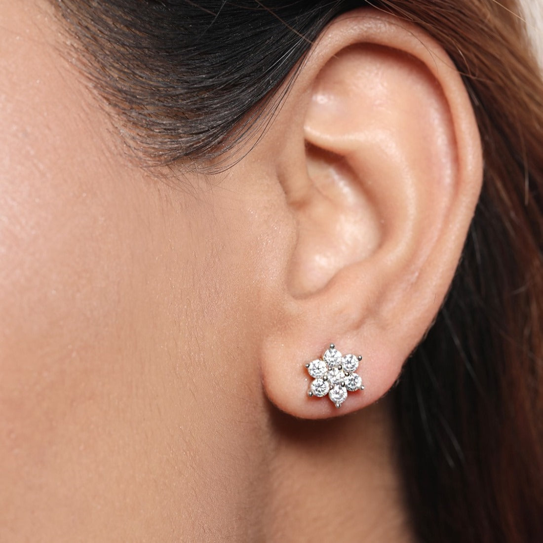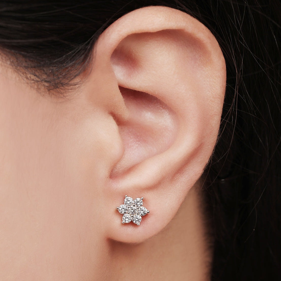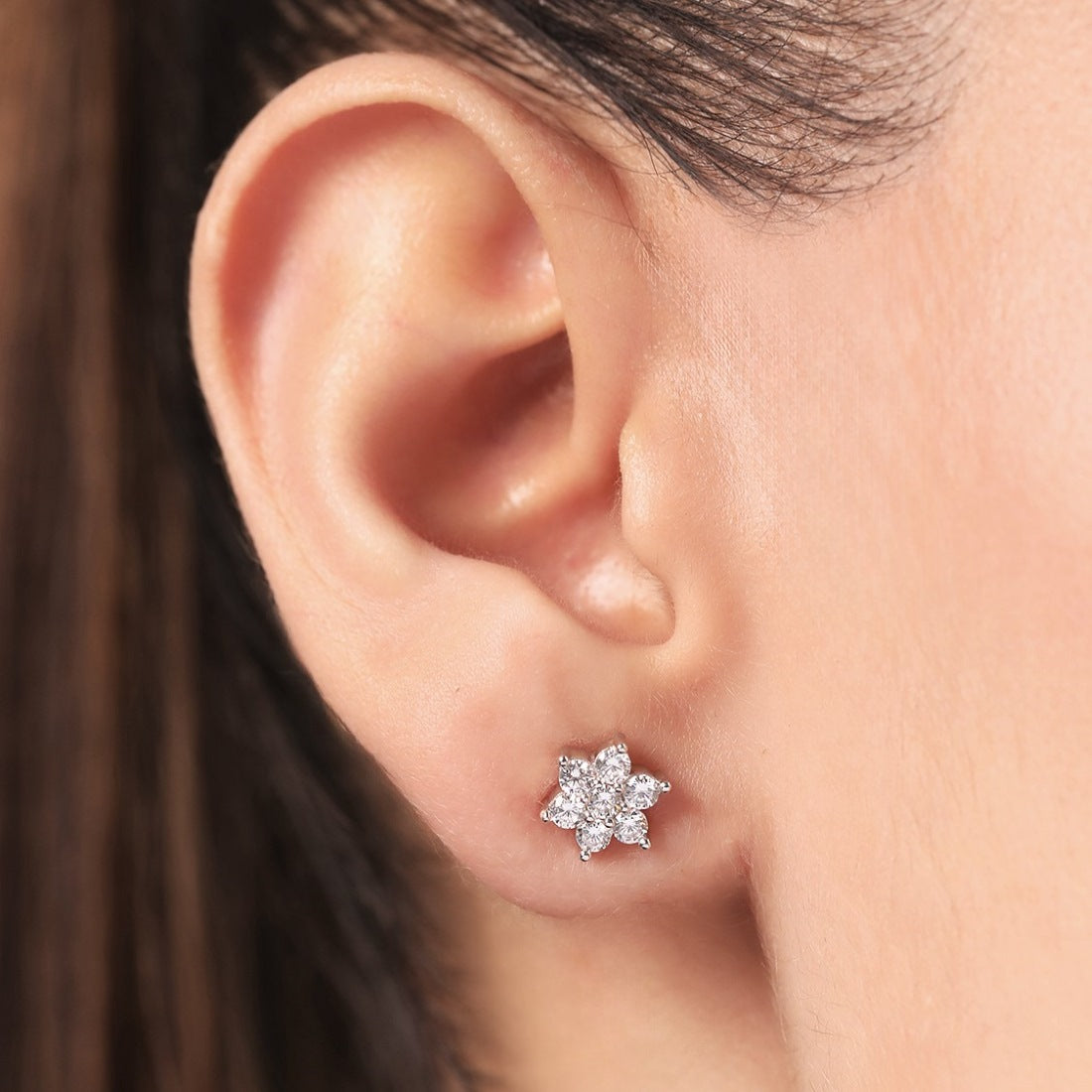 CZ Studded Star Rhodium Plated 925 Sterling Silver Studs