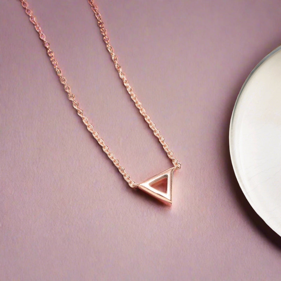 Divine Angles Rose Gold Triangle 925 Sterling Silver Necklace