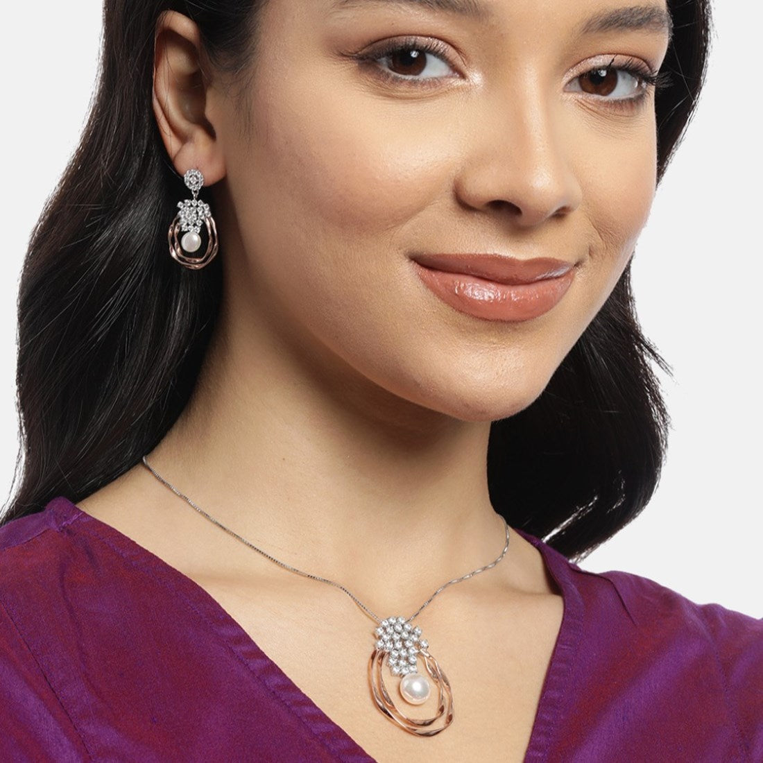 Product Description:- Elevate your elegance with our Dual Harmony Sparkle Jewelry Set. Meticulously crafted from high-quality 925 Sterling Silver and adorned with a captivating dual-tone plating, this set features dazzling Cubic Zirconia accents. The result is a stunning ensemble that seamlessly blends sophistication with modern allure, making it a perfect choice for adding a touch of timeless glamour to any occasion.