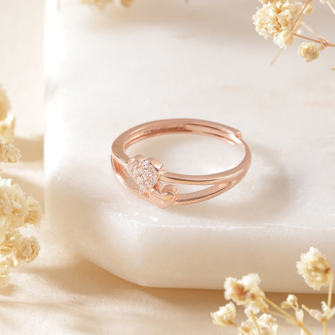 Dual Heartbeat Rose gold-plated 925 Sterling Silver ring for Her (Adjustable)