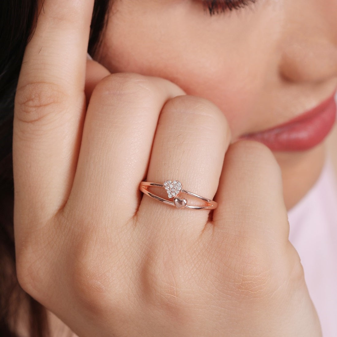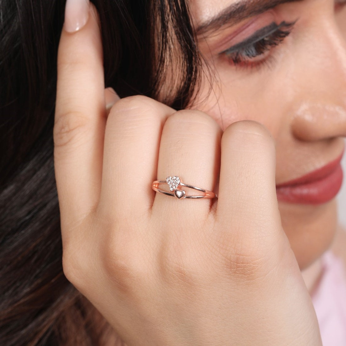 Product Description:- Embrace the rhythm of love with our 'Dual Heartbeat' ring, an exquisite tribute to romance and connection. Crafted with precision from premium 925 sterling silver and adorned with a warm rose gold plating, this ring features two intertwined hearts, symbolizing a love that beats as one. It's a timeless piece that resonates with emotion and grace, making it the perfect gift for her or a cherished addition to your own collection. 'Dual Heartbeat' is a reminder of the enduring power of love and unity.
