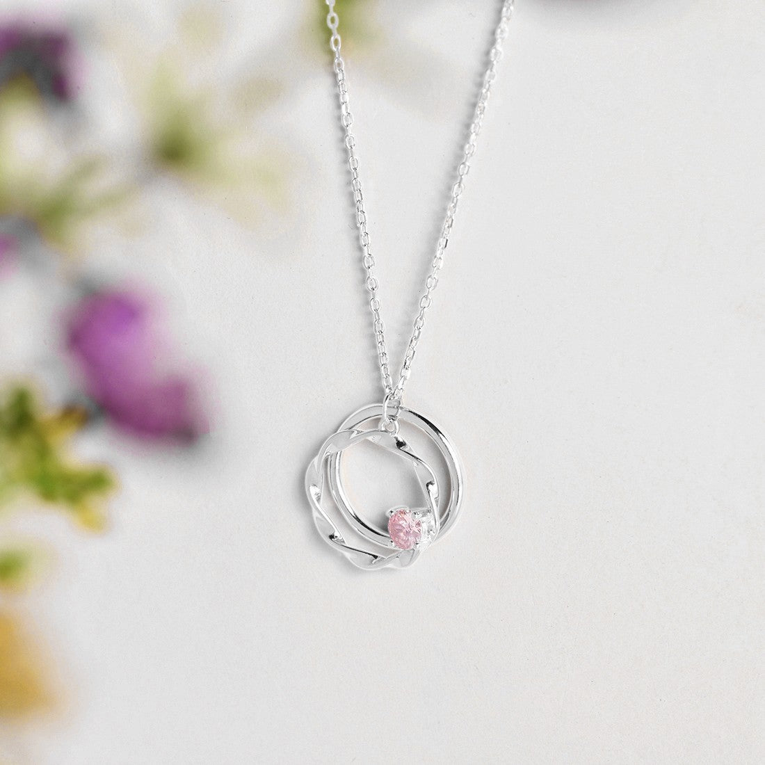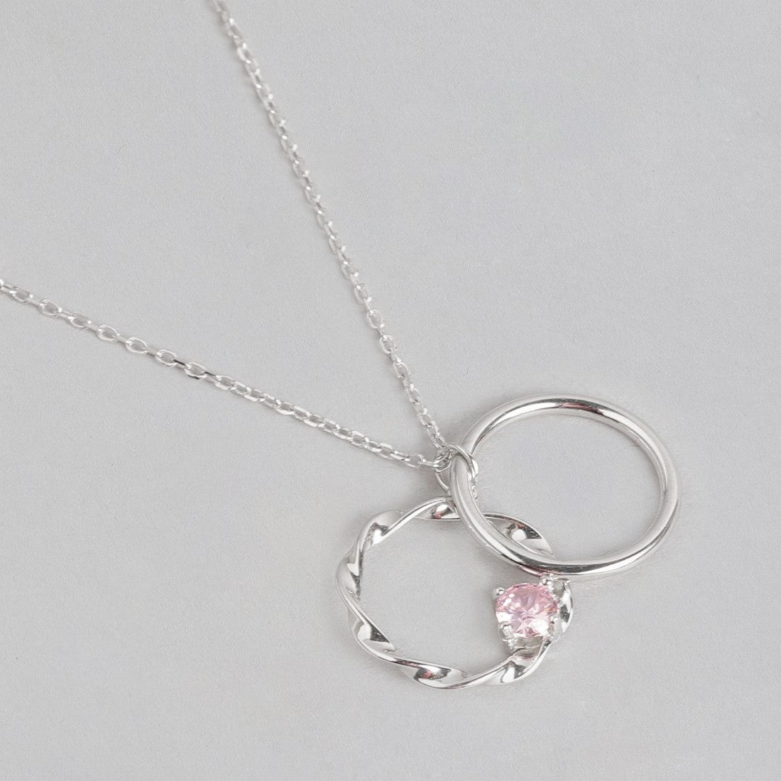 Duo Circle Pink CZ 925 Sterling Silver Necklace