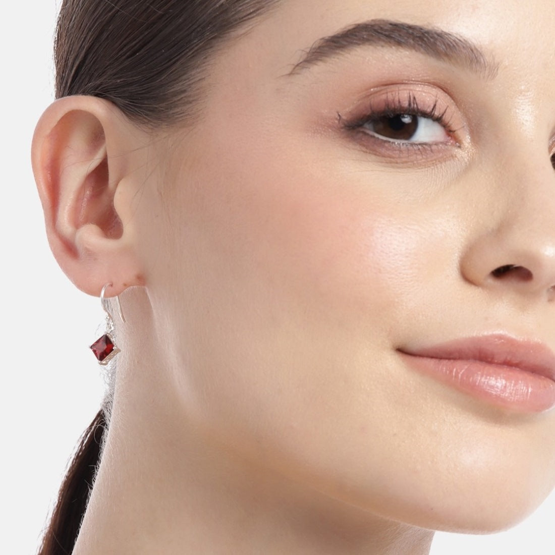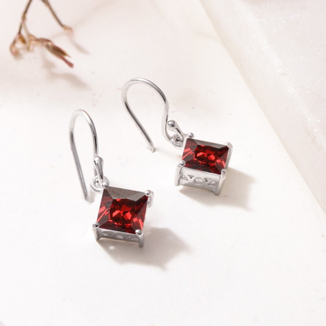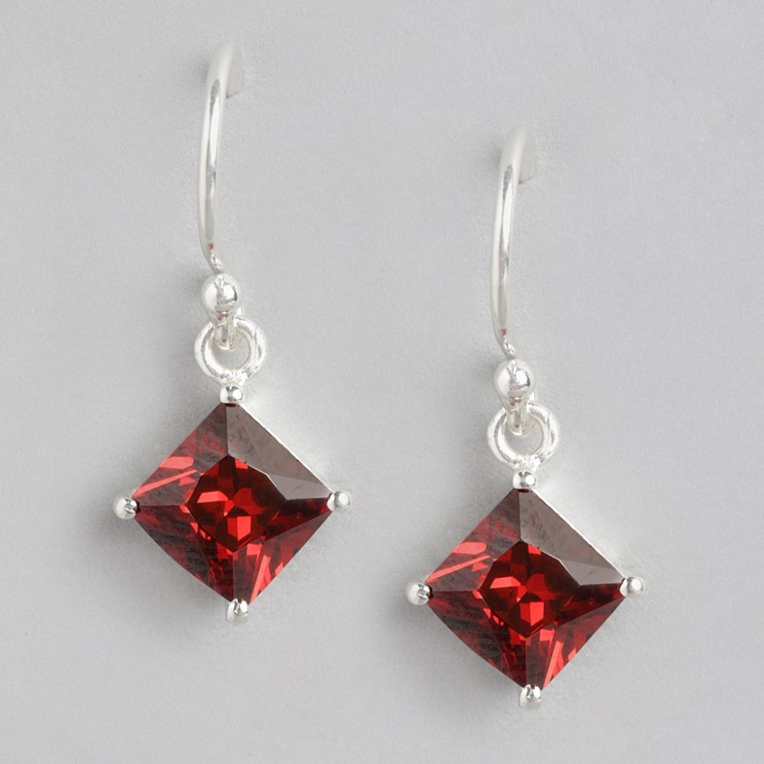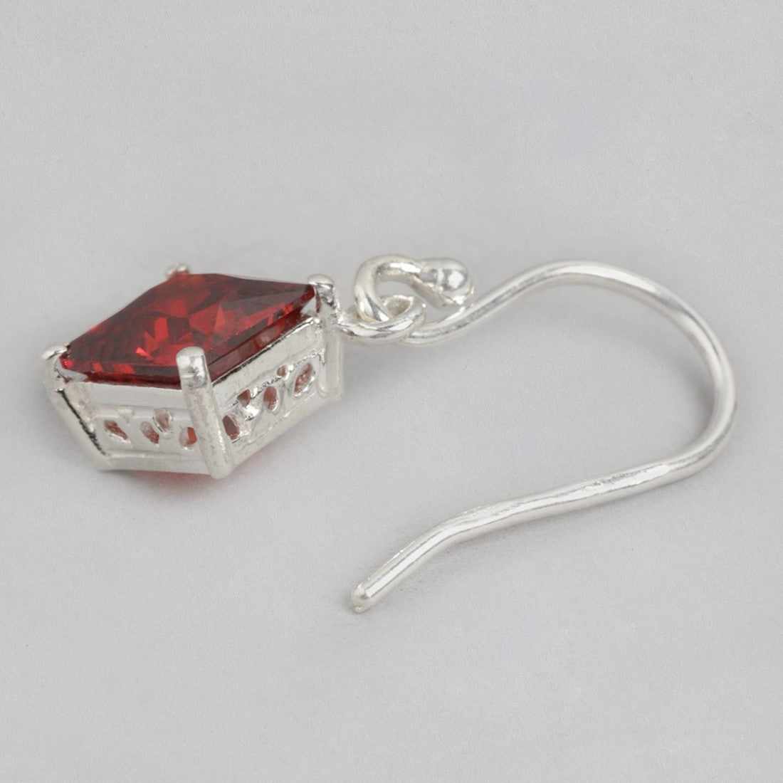 Glamour Rhodium-Plated Red CZ 925 Sterling Silver Drop Earrings