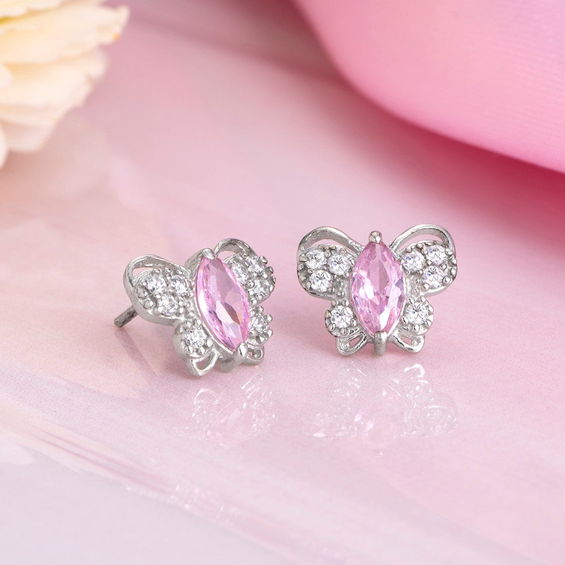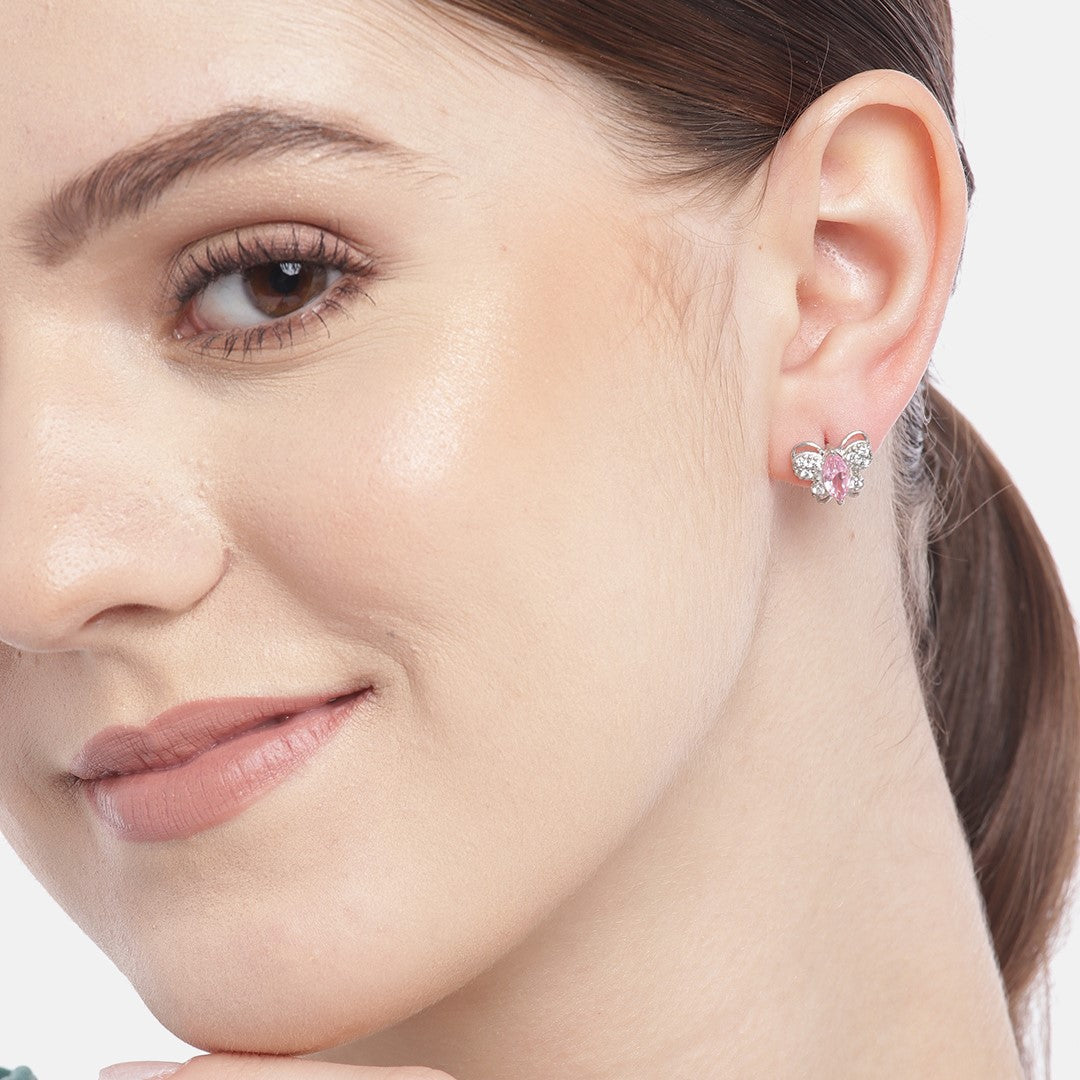 Elegant Butterfly CZ Studded 925 Silver Earrings