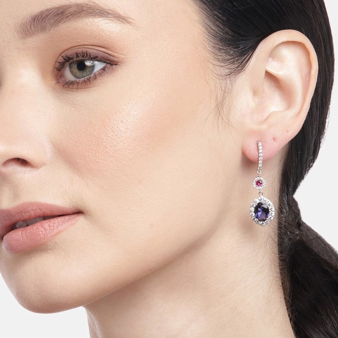 Product Description:- Step into the spotlight with our Enchanted Dazzle Rhodium-Plated 925 Sterling Silver Drop Earrings. These exquisite earrings feature shimmering cubic zirconia stones set in a captivating design that exudes elegance and sophistication. The rhodium-plated sterling silver enhances the brilliance of the gemstones while ensuring durability and shine. With a secure and comfortable fit, these earrings are perfect for any occasion, adding a touch of enchantment to your ensemble. Elevate your style and embrace the allure of these timeless and eye-catching drop earrings.