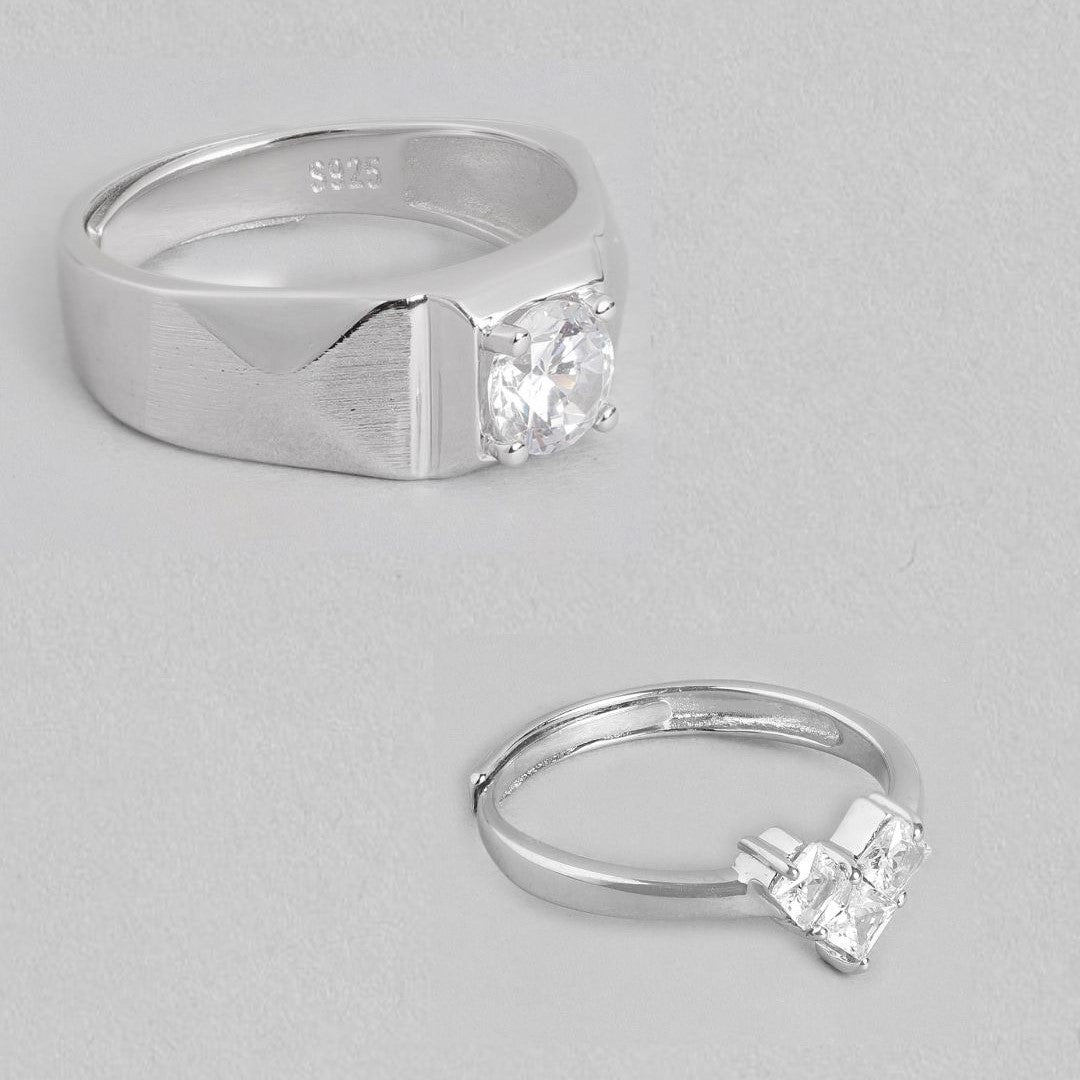 Enchanted Promise Rhodium-Plated 925 Sterling Silver Couple Ring (Adjustable)