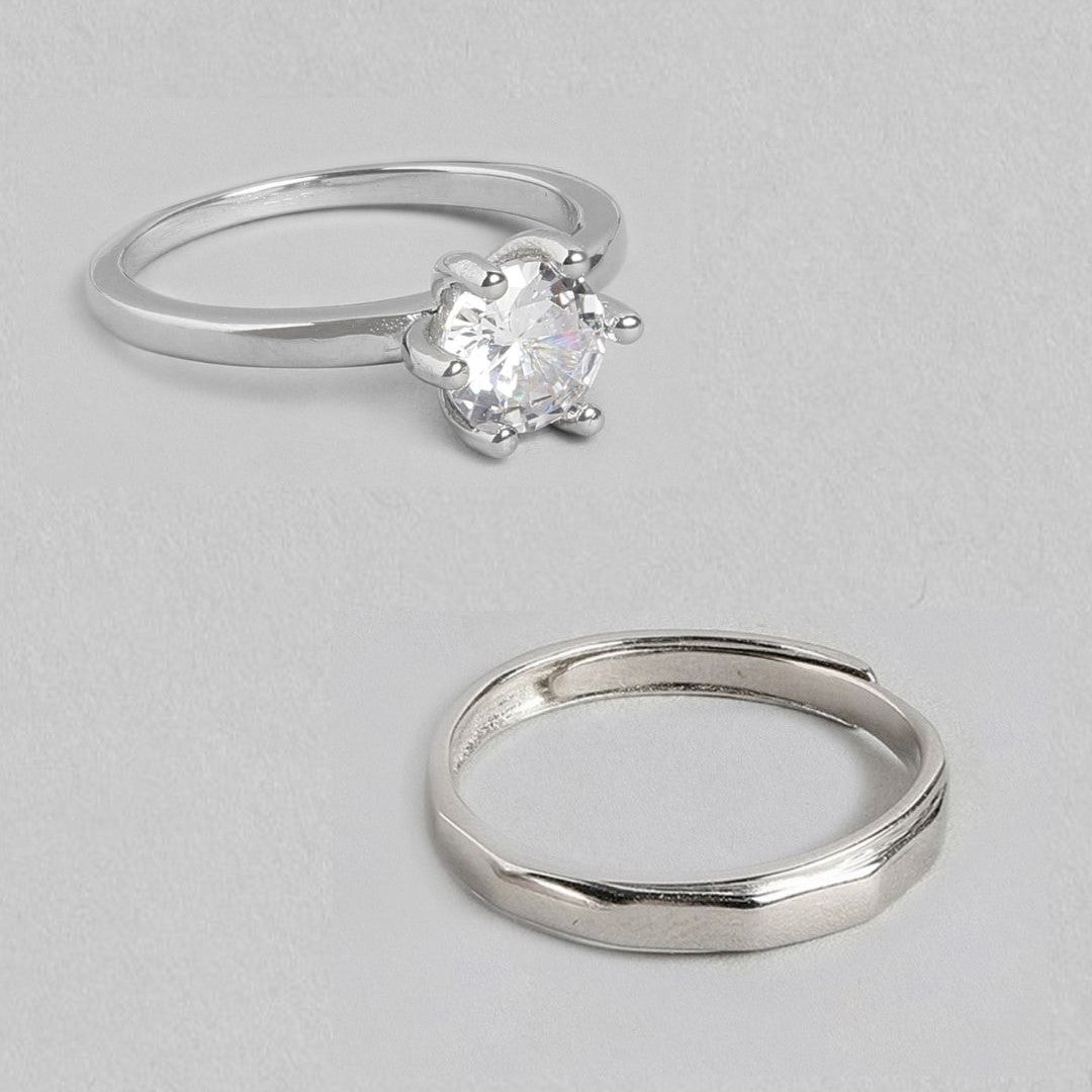 Enchanting Unity Rhodium-Plated 925 Sterling Silver Couple Ring (Adjustable)