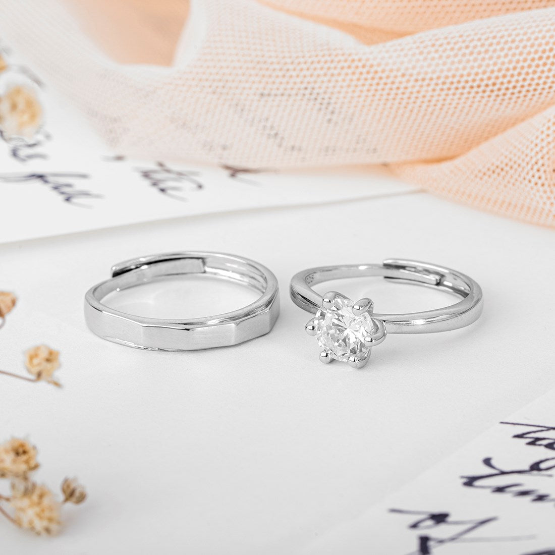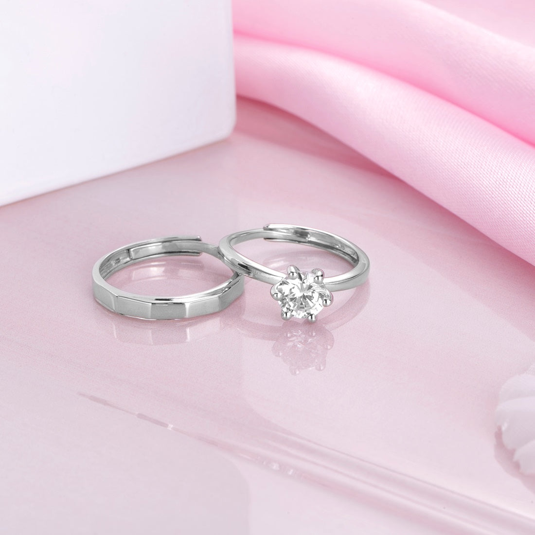 Product Description:- Experience eternal love and enchanting unity with this stunning Rhodium-Plated 925 Sterling Silver Solitaire Couple Ring. Crafted with meticulous attention to detail, this ring features a dazzling solitaire gemstone that symbolizes the timeless bond between two souls. The Rhodium plating adds a touch of elegance and enhances the durability of the ring. With its exquisite design and superior craftsmanship, this ring is a perfect symbol of your everlasting love and commitment. Embrace the enchantment of togetherness with this beautiful solitaire couple ring.