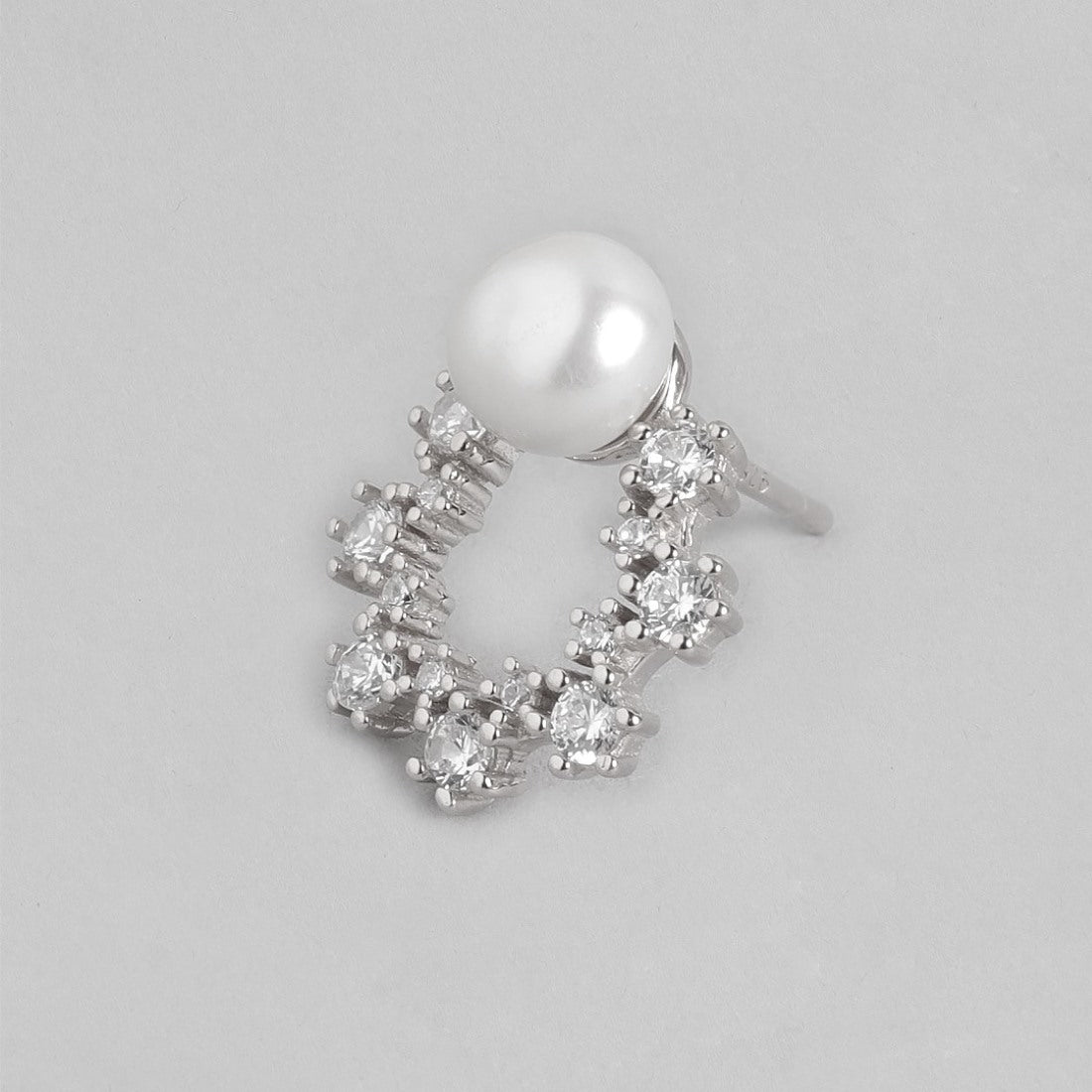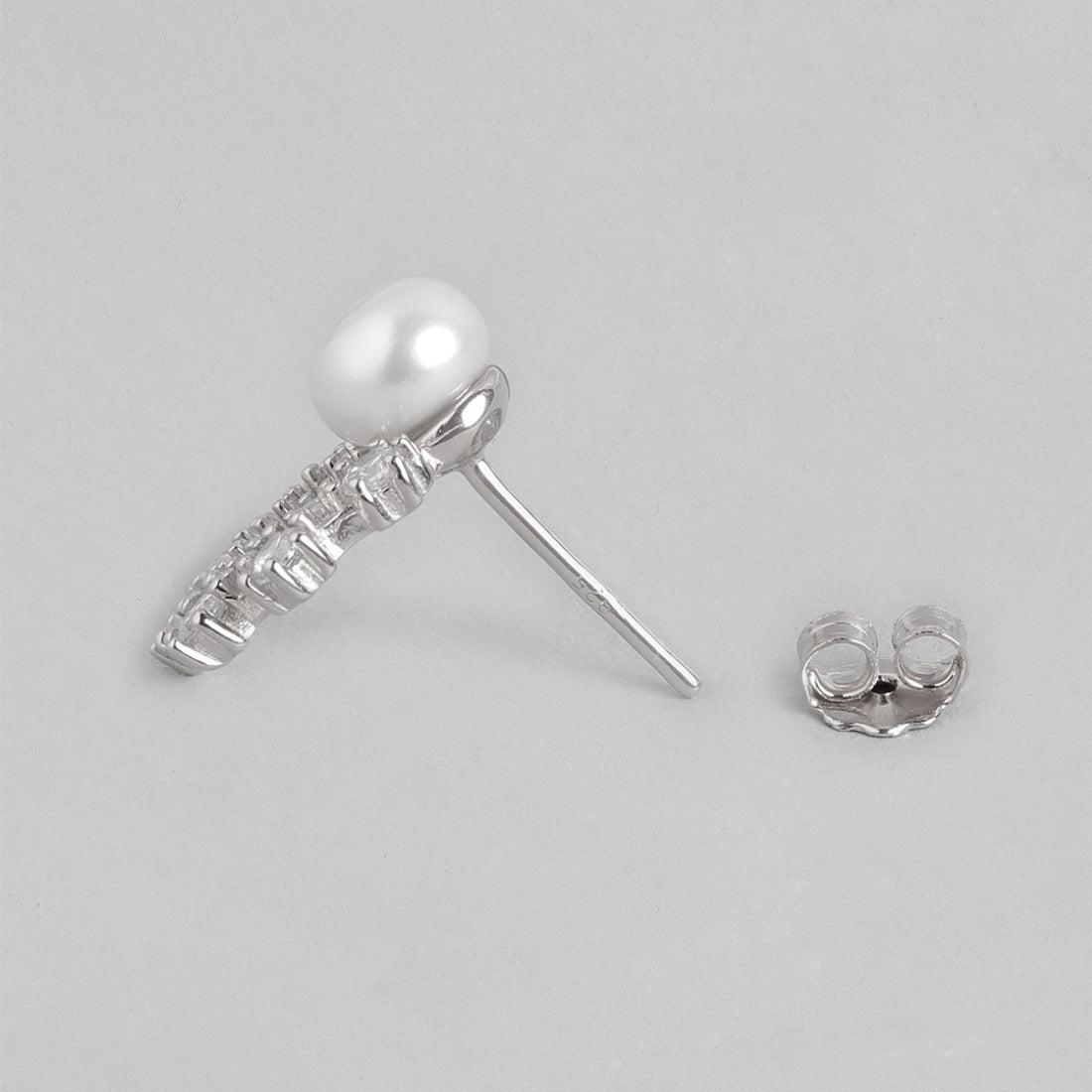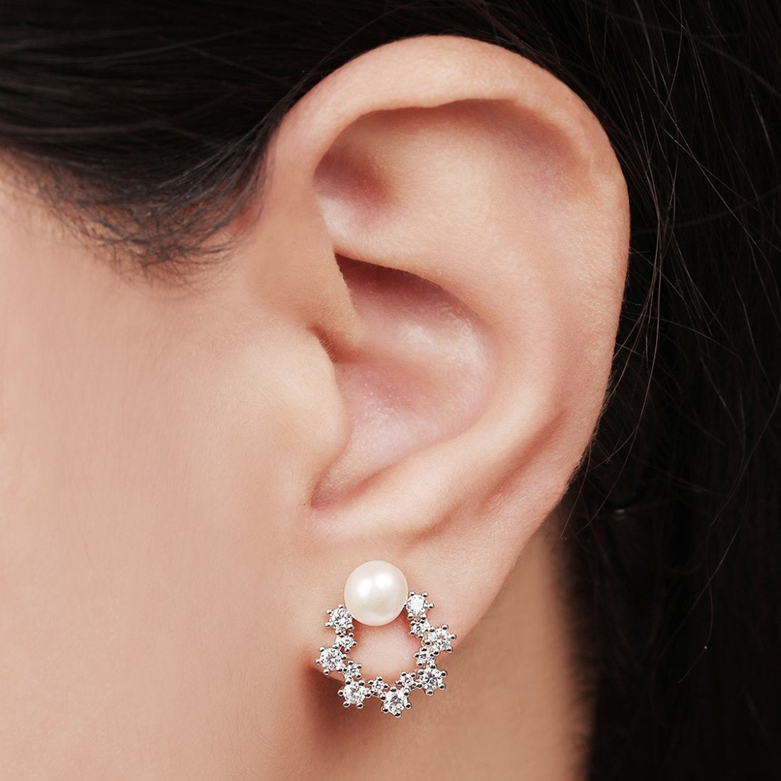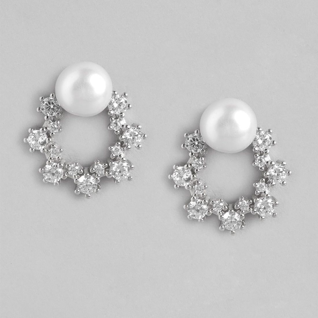 Product Description:- Grace your ears with the eternal beauty of our 925 sterling silver earrings. The intricate flower pattern, bathed in radiant rhodium plating, symbolizes everlasting bloom. Each petal is adorned with sparkling cubic zirconia, while a lustrous freshwater pearl adds a touch of sophistication, creating earrings that capture the essence of timeless elegance.