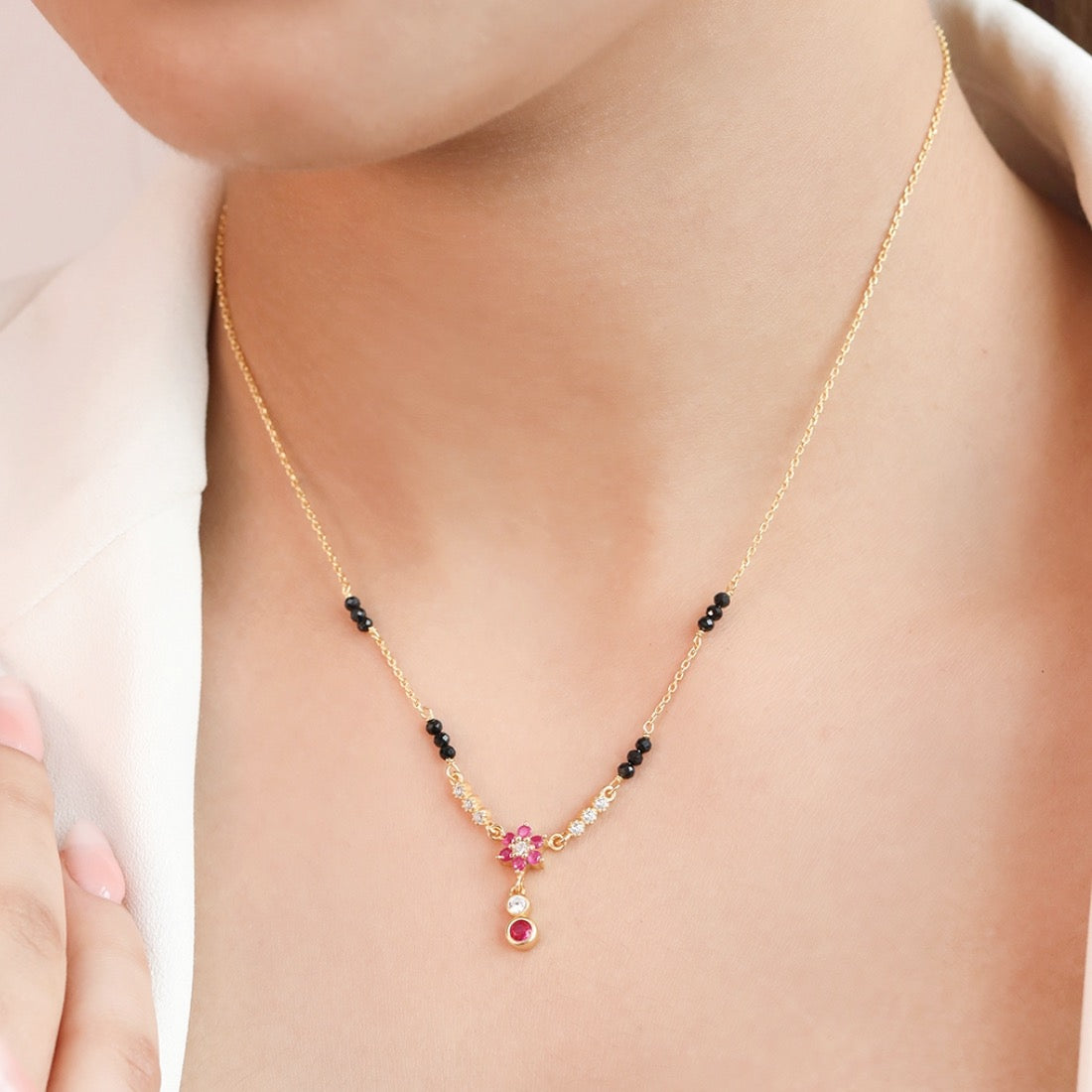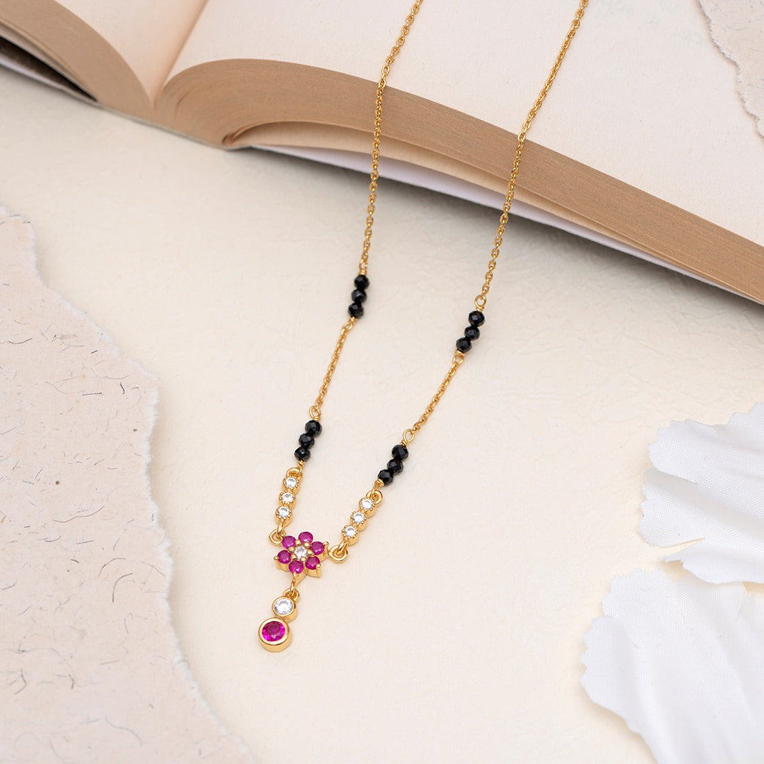 Eternal Petals Gold Plated CZ 925 Sterling Silver Flower Mangalsutra