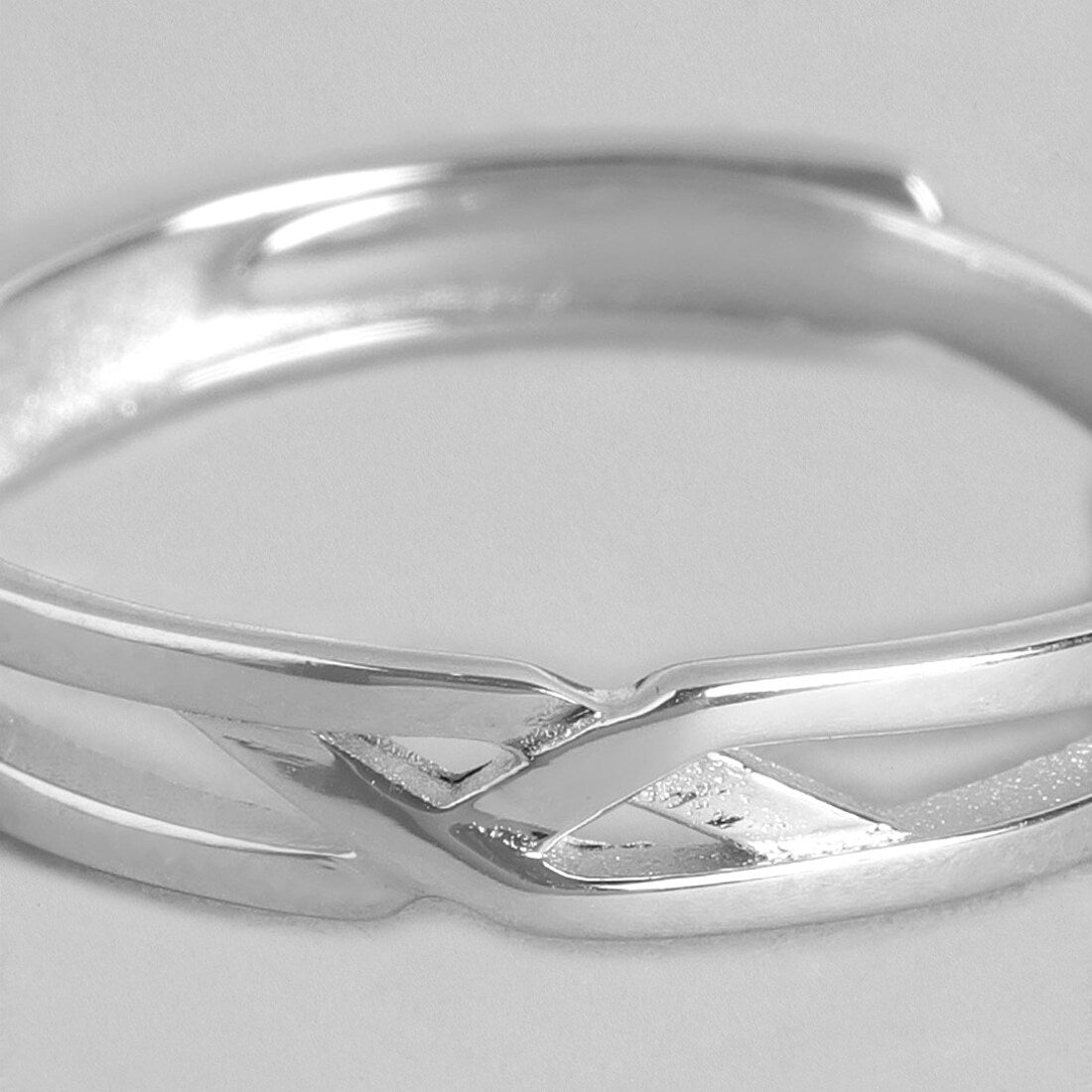 Eternal Strength Rhodium-Plated 925 Sterling Silver Weave Ring for Him (Adjustable)
