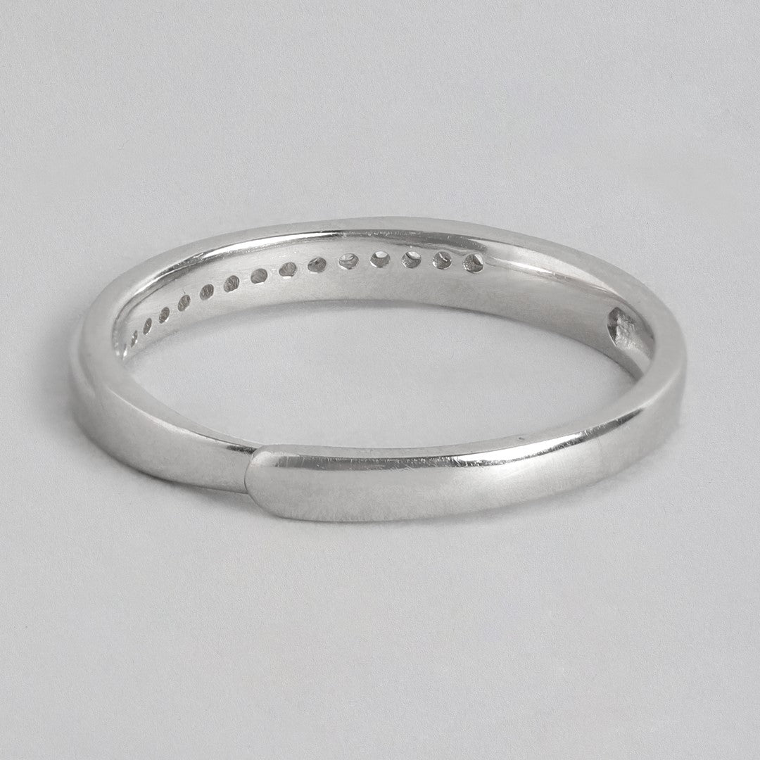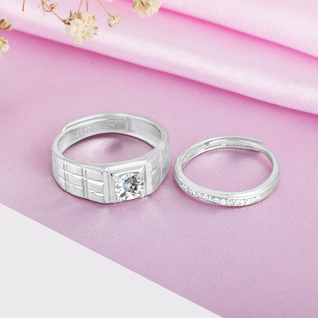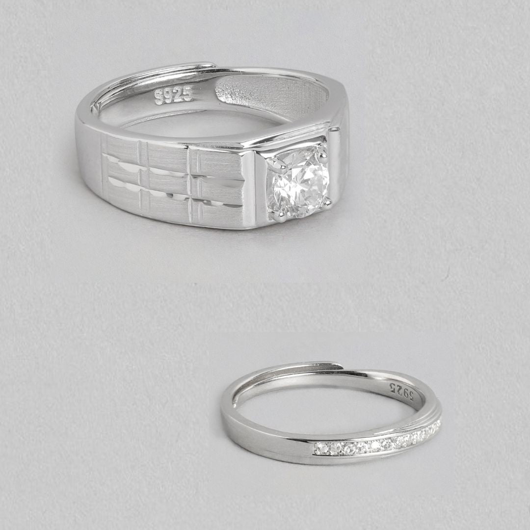 Everlasting Bliss Rhodium-Plated 925 Sterling Silver Solitaire Couple Ring (Adjustable)