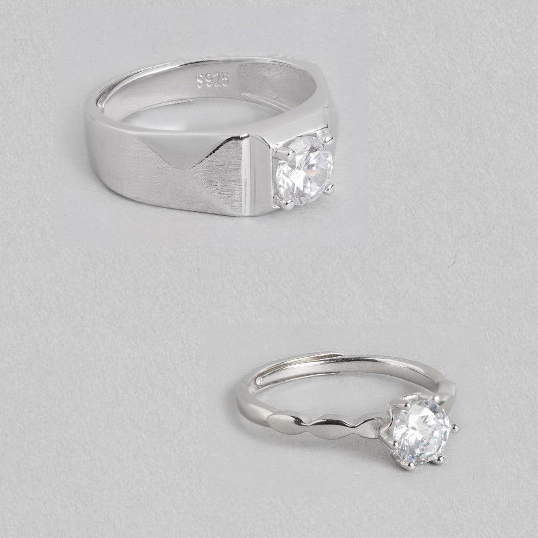 Product Description:- Intertwined in an eternal promise, this Rhodium-Plated 925 Sterling Silver Solitaire Couple Ring symbolizes the unbreakable bond between two souls. Crafted with exquisite attention to detail, the ring features a brilliant solitaire gemstone at its center, radiating a captivating sparkle. The sleek and modern design adds a touch of sophistication, while the high-quality sterling silver construction ensures durability and lasting beauty. This couple ring serves as a constant reminder of the eternal promise made between two hearts, creating a cherished keepsake that will be treasured for a lifetime.