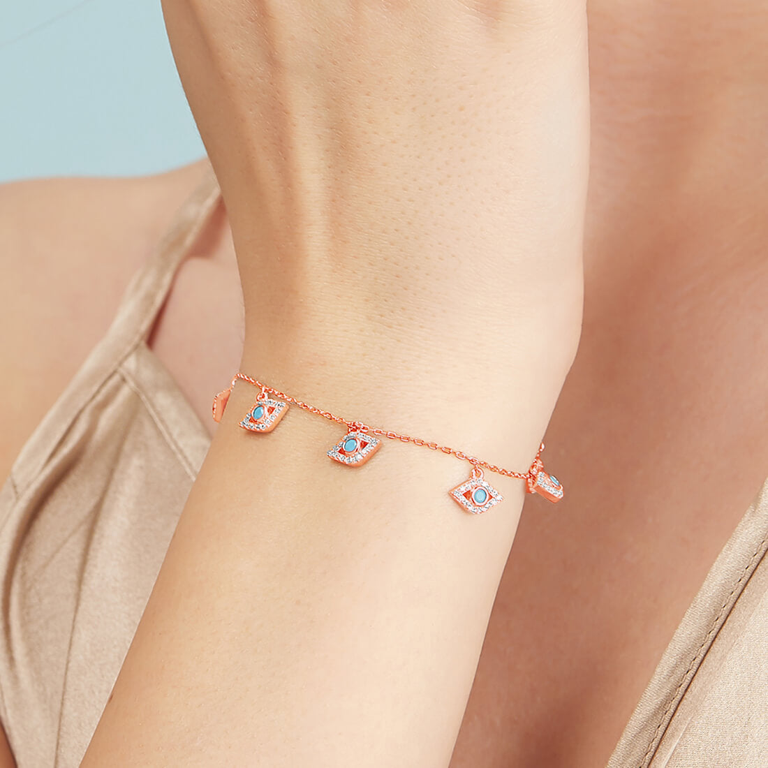 Evil Eye Charms 925 Silver Bracelet in Rose Gold