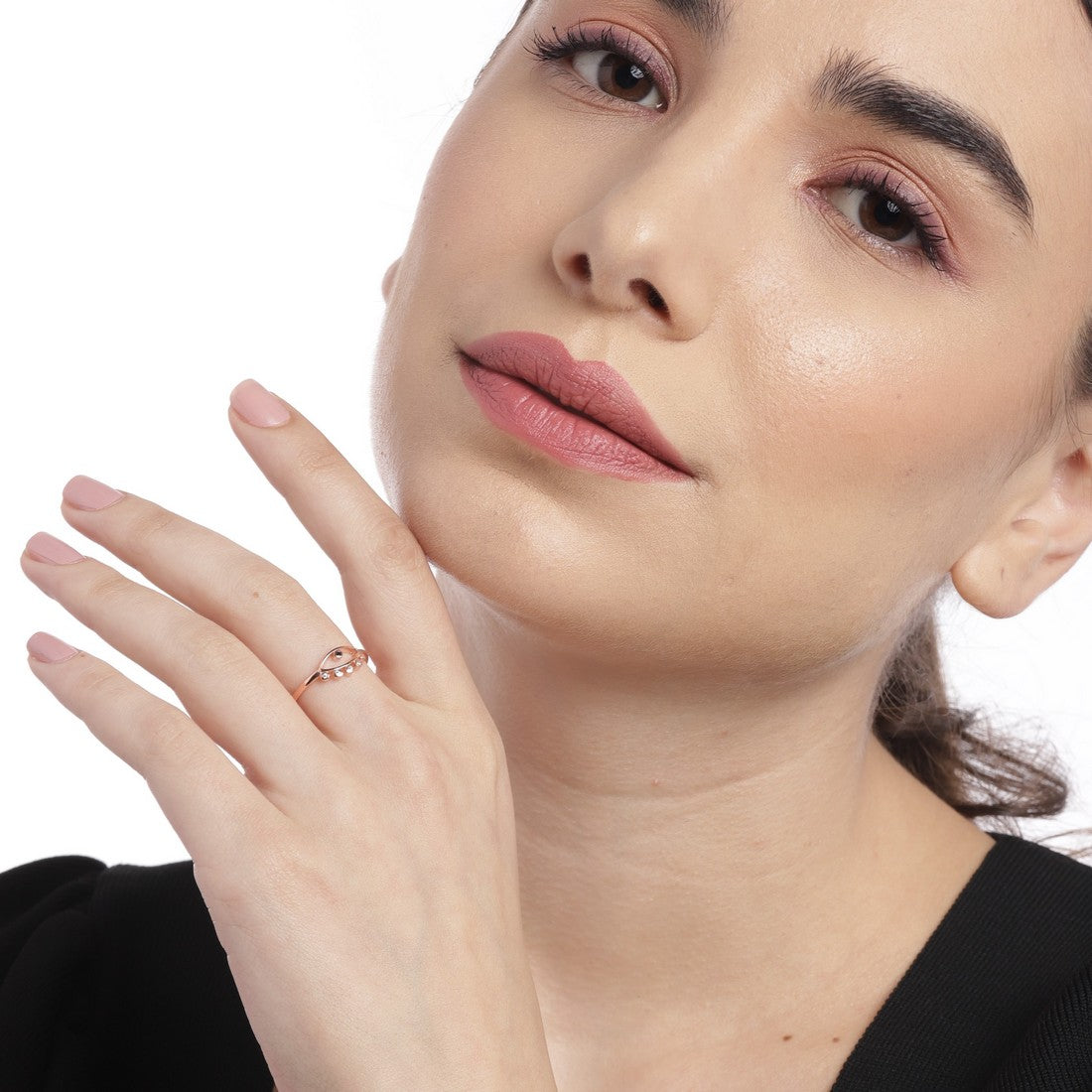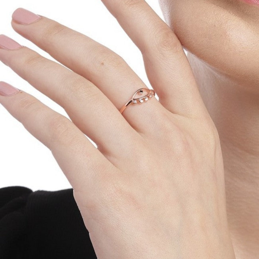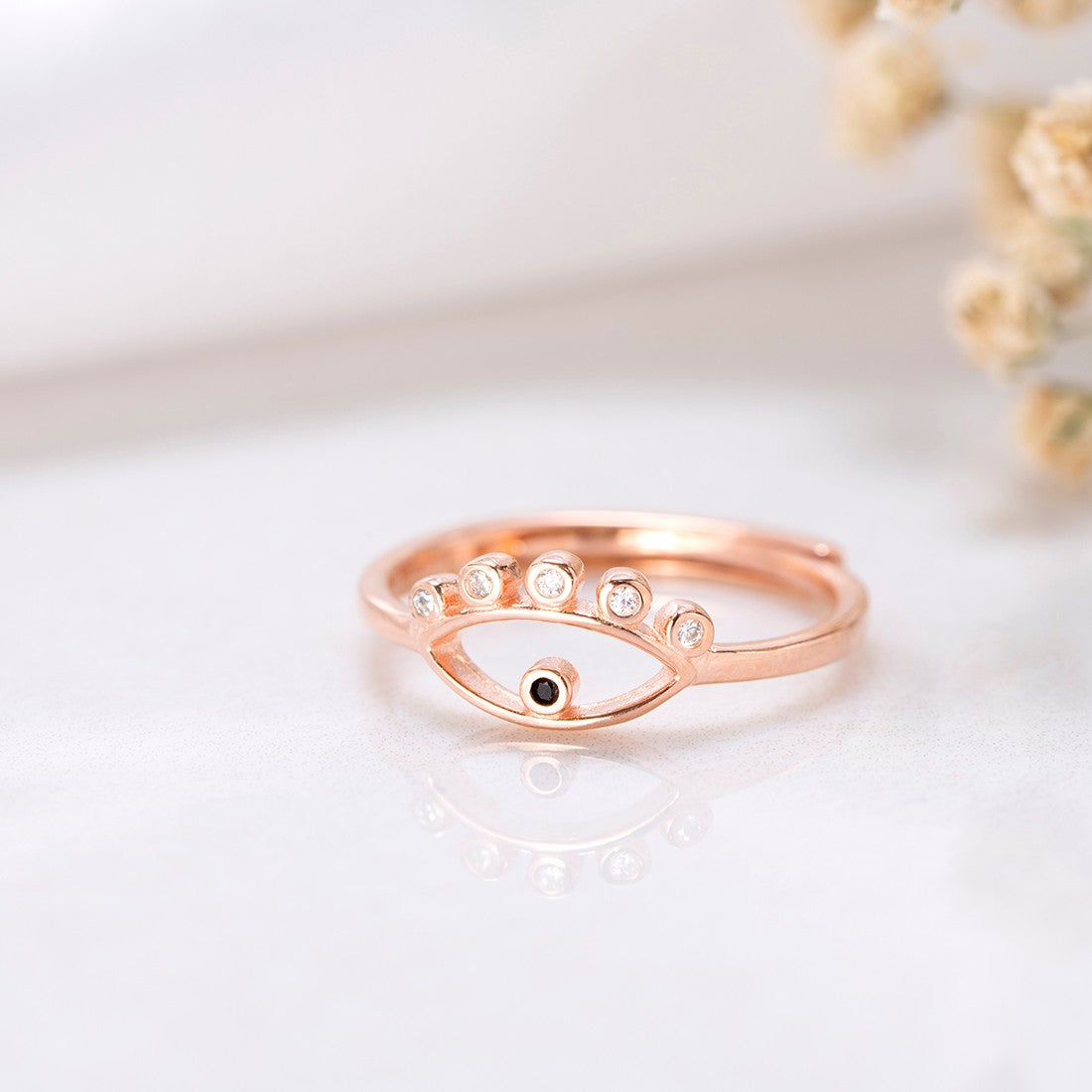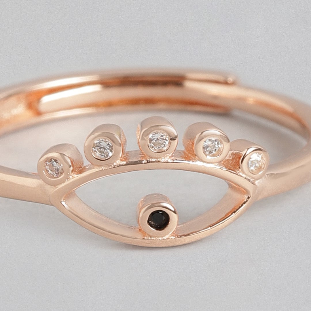 Evil Eye Rose Gold Plated CZ 925 Sterling Silver Ring for Women (Adjustable)