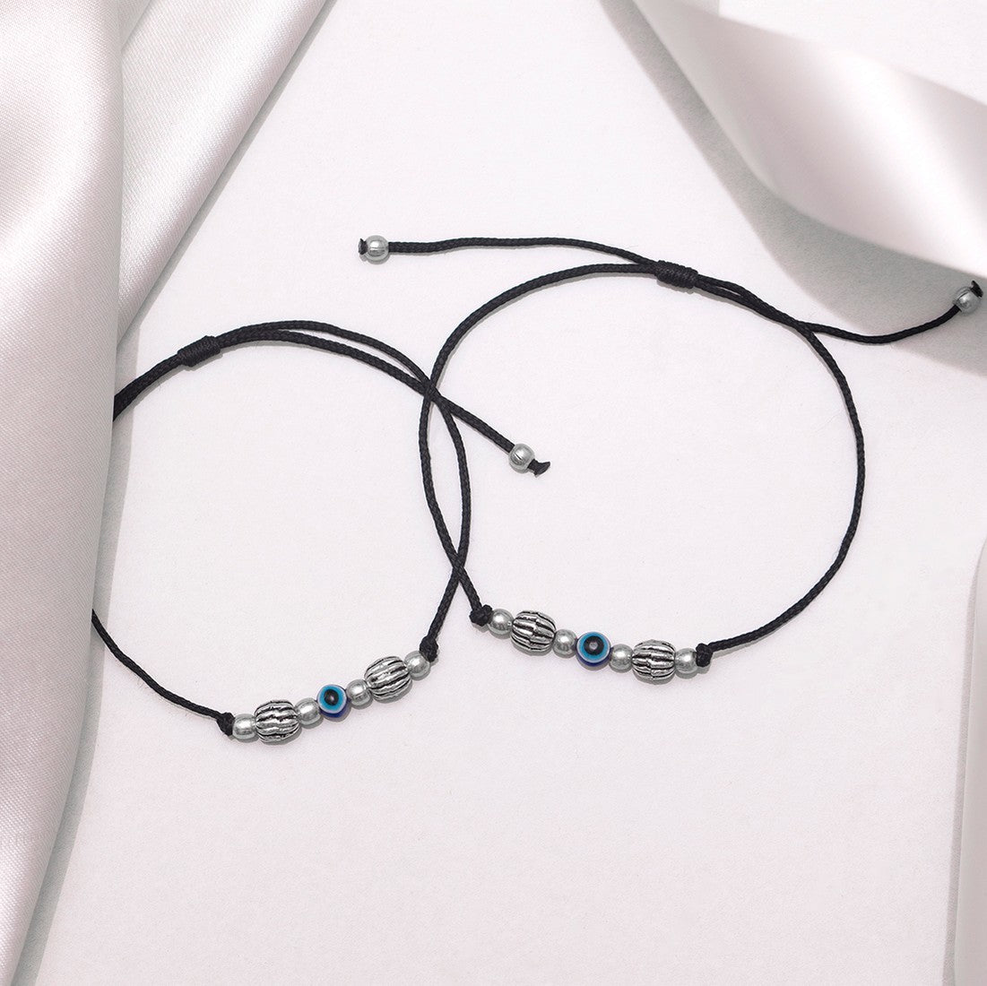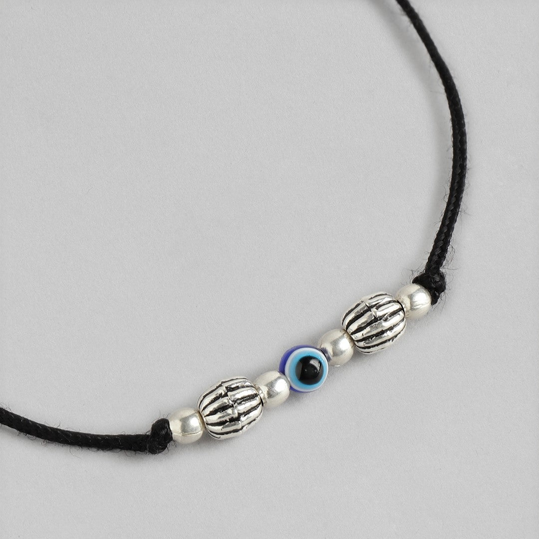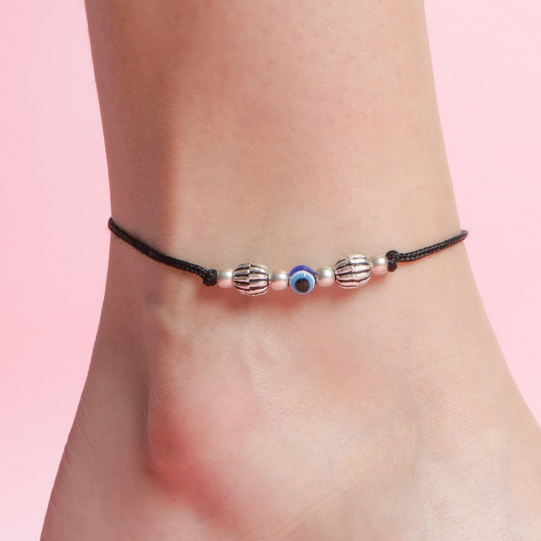 Product Description:- This beautiful Evil Eyes Rhodium Plated 925 Sterling Silver Thread Anklet is the perfect addition to any jewelry collection. The anklet features a delicate thread design, adorned with a stunning evil eye charm that is intricately crafted with sparkling CZ stones. The evil eye charm is believed to ward off negative energy and protect the wearer from harm, making this anklet both stylish and meaningful. The anklet is made from high-quality 925 sterling silver, which is rhodium plated for added durability and shine. It is lightweight and comfortable to wear, making it perfect for everyday wear or special occasions.