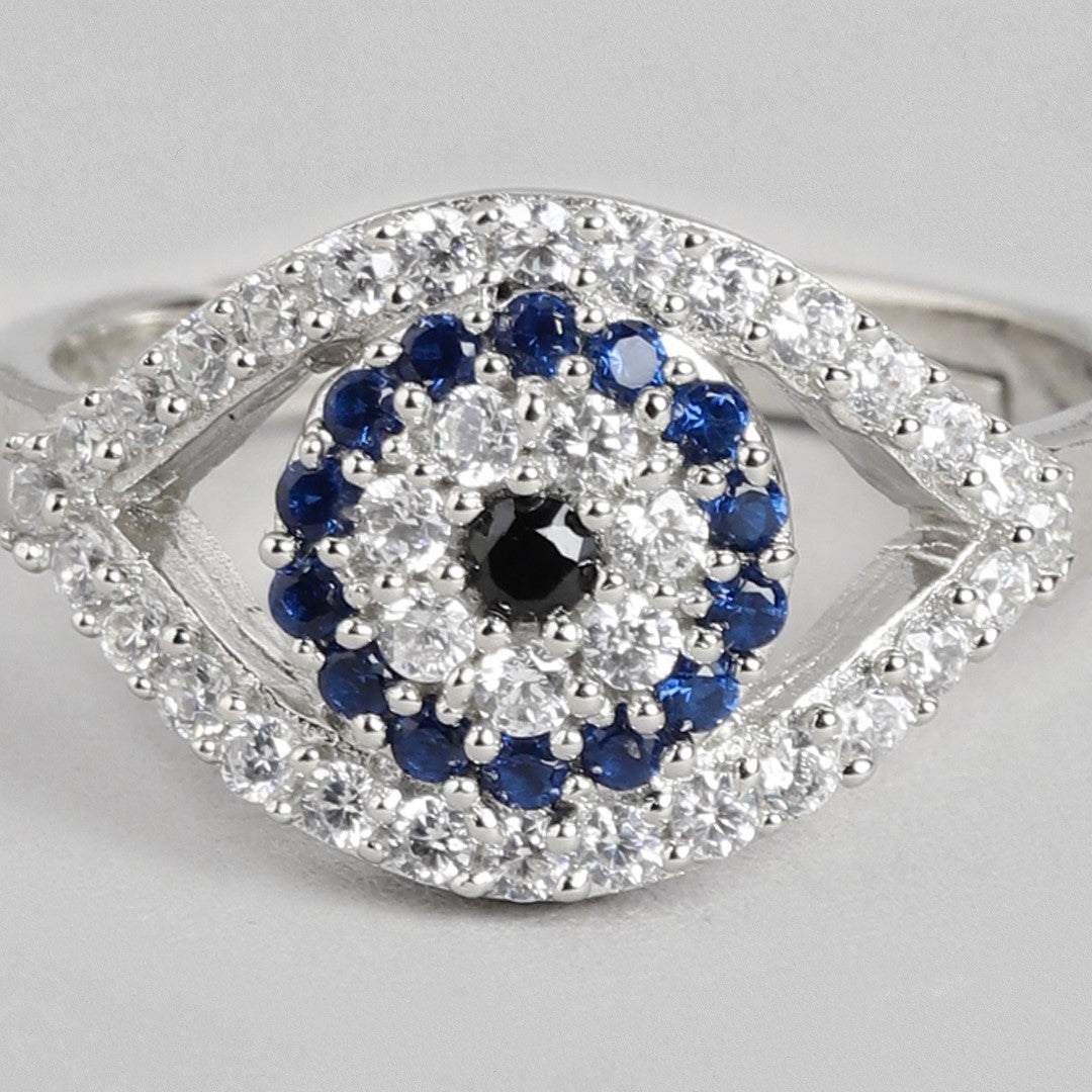 Eyes of Protection Rhodium-Plated CZ 925 Sterling Silver Ring (Adjustable)
