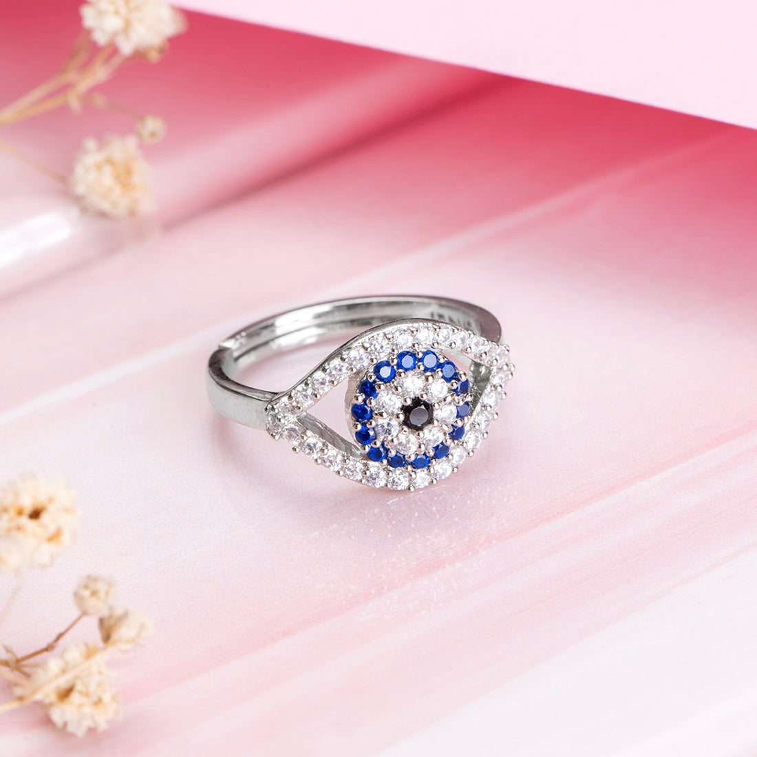 Product Description:- Dive into the captivating charm of our 'Eyes of Protection' ring. Meticulously crafted from durable 925 sterling silver and finished with a radiant rhodium plating, this ring features the enigmatic Evil Eye pattern, adorned with sparkling cubic zirconia. The Evil Eye is a symbol of safeguarding against negativity and harm. This exquisite piece is not only a testament to your style but also a guardian of your well-being. With 'Eyes of Protection,' embrace timeless elegance while keeping the power of protection close at hand.