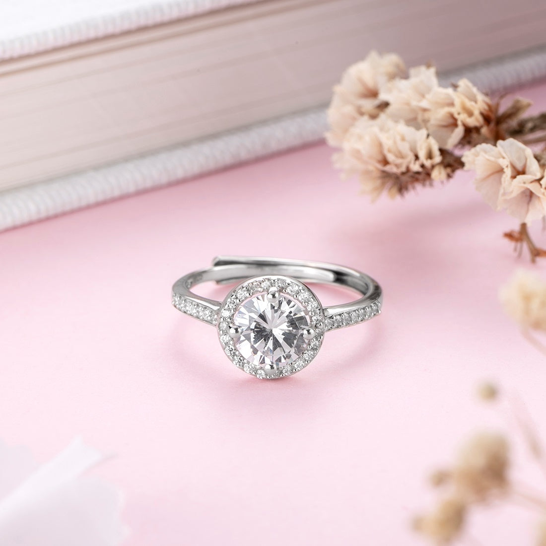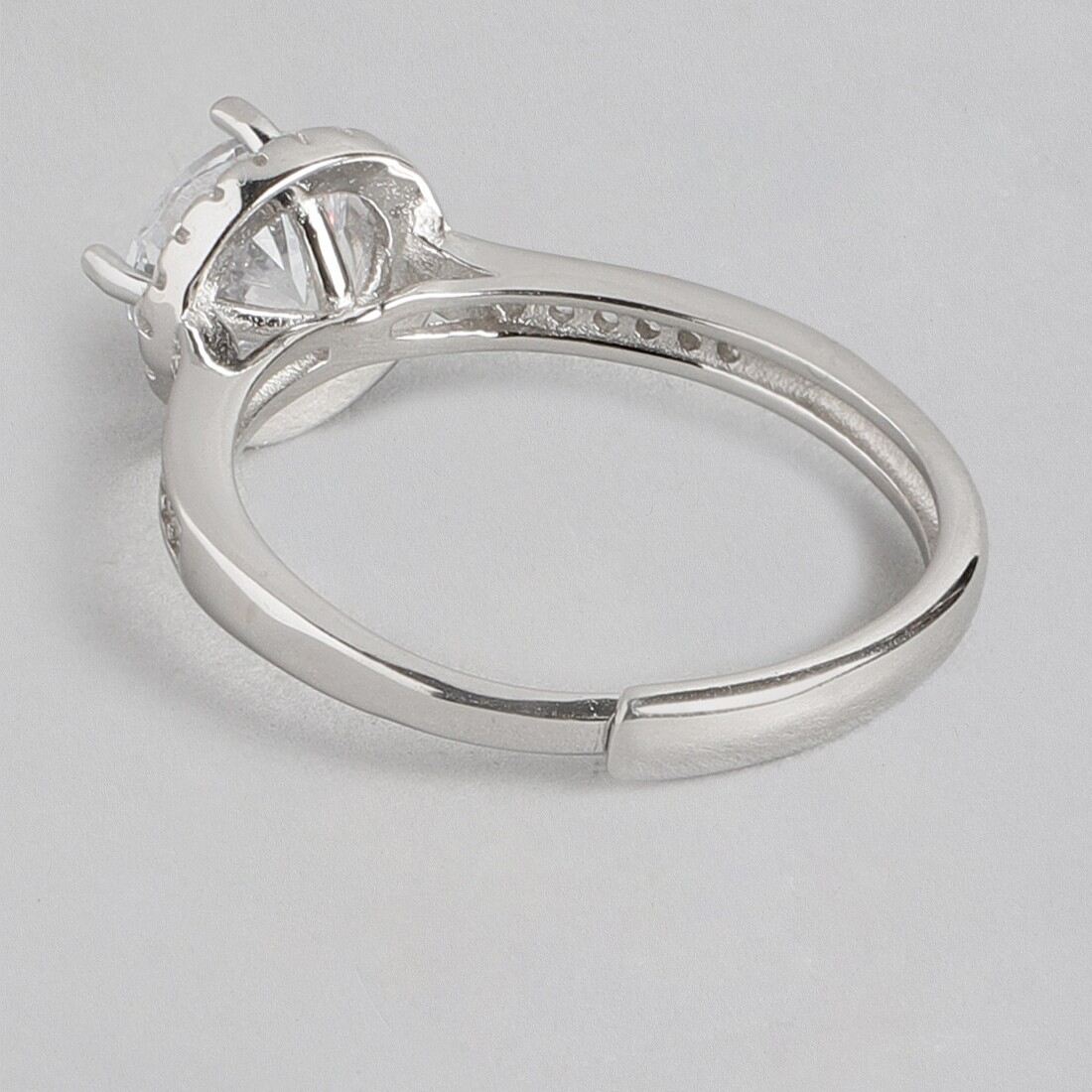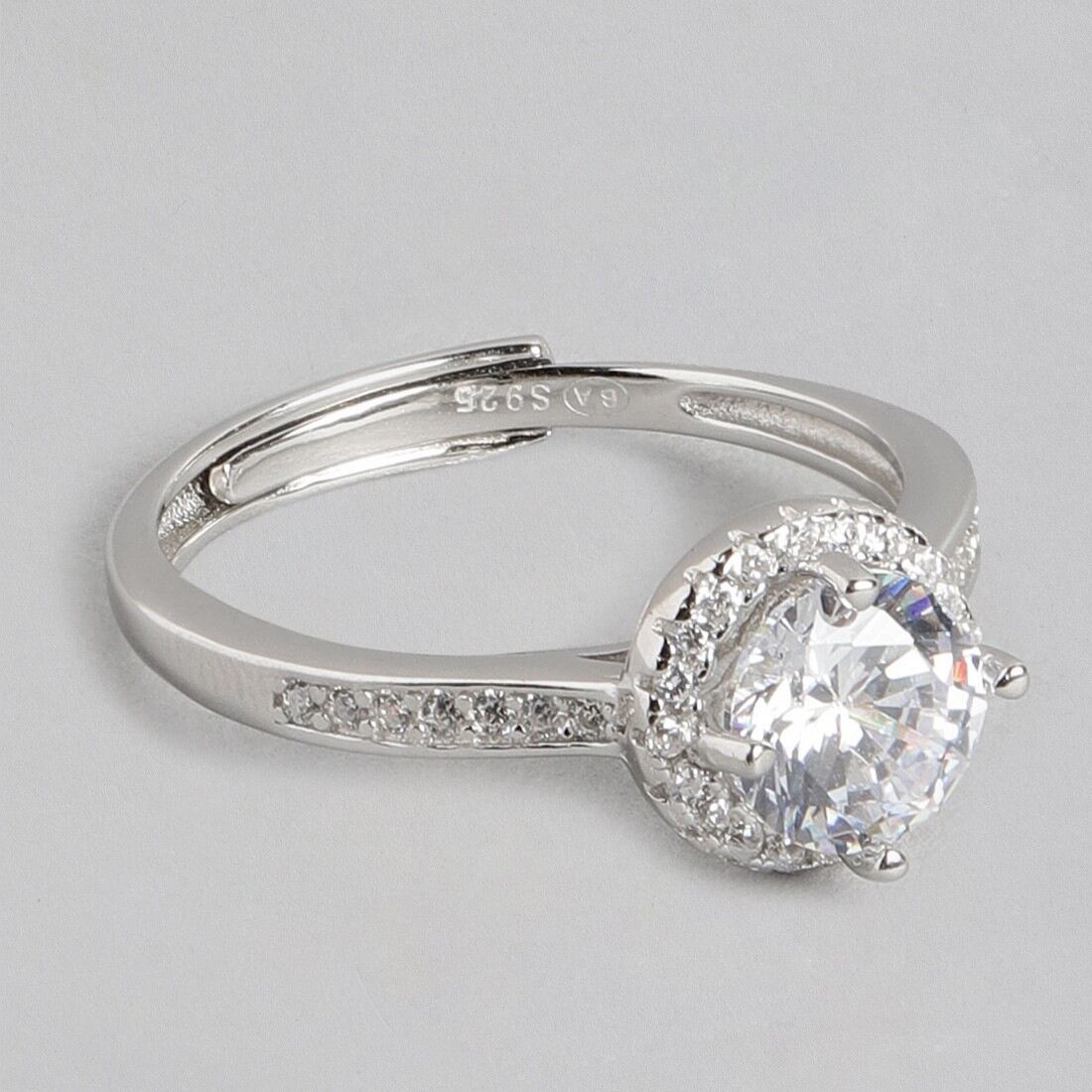 Solitaire Halo 925 Silver Ring (Adjustable)