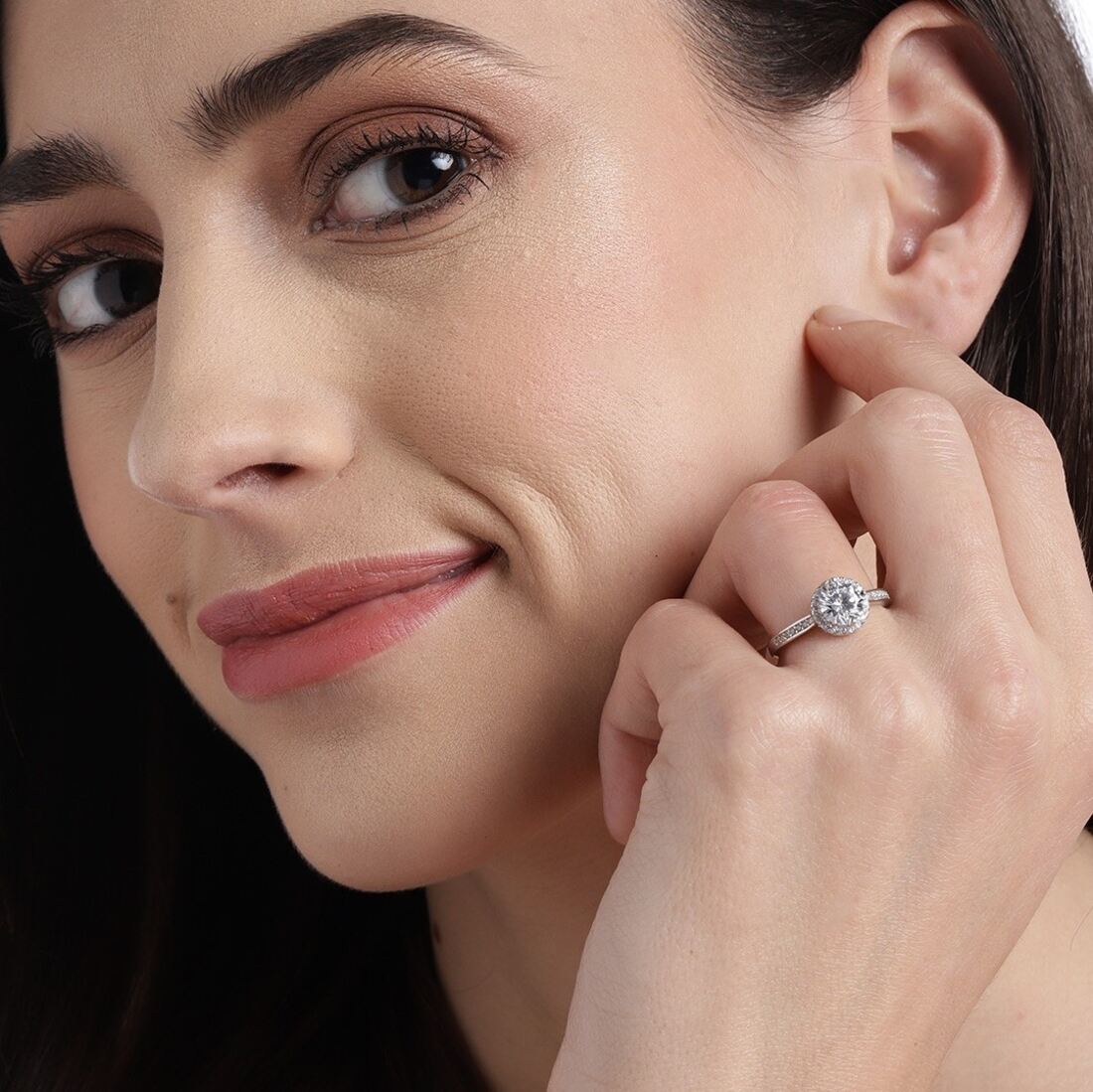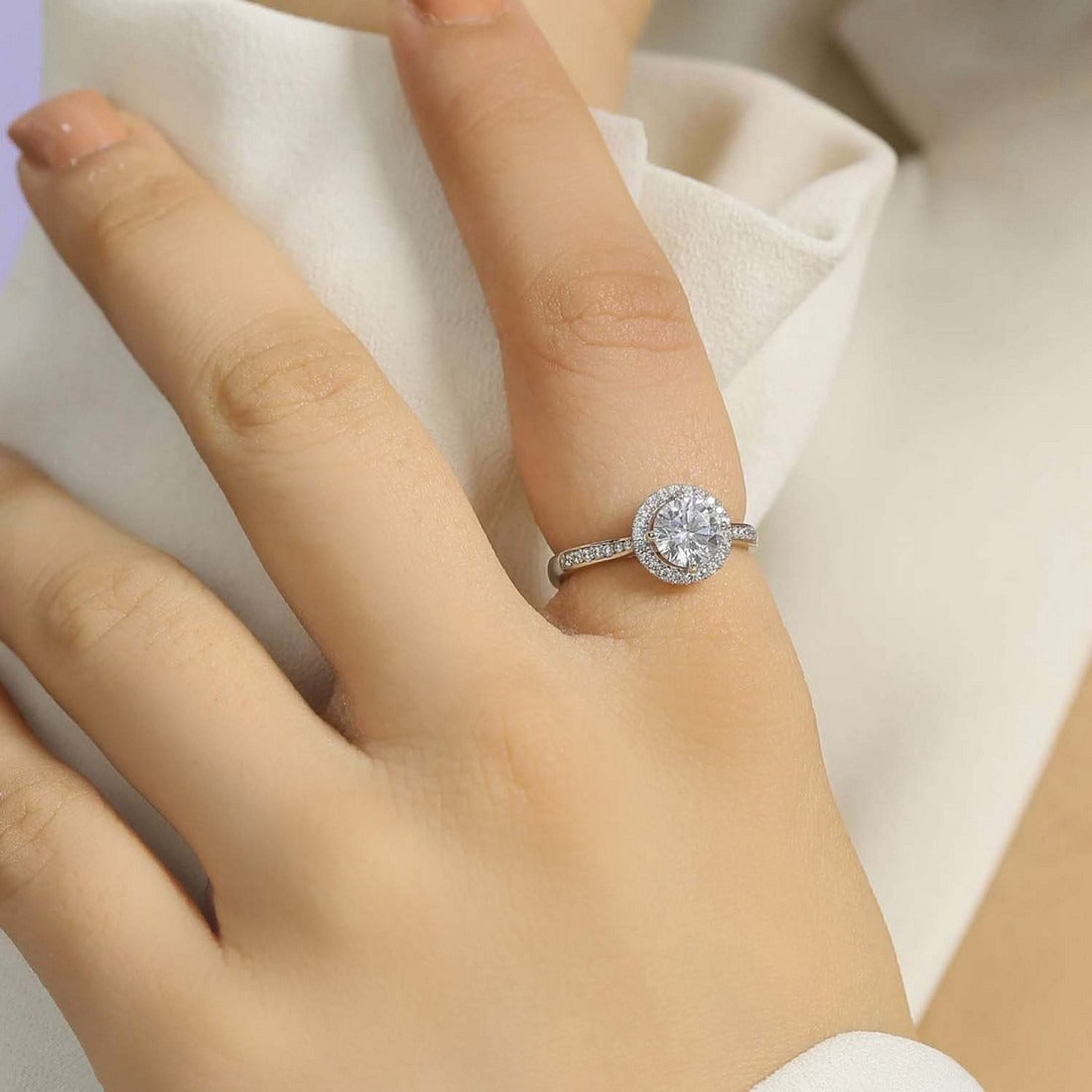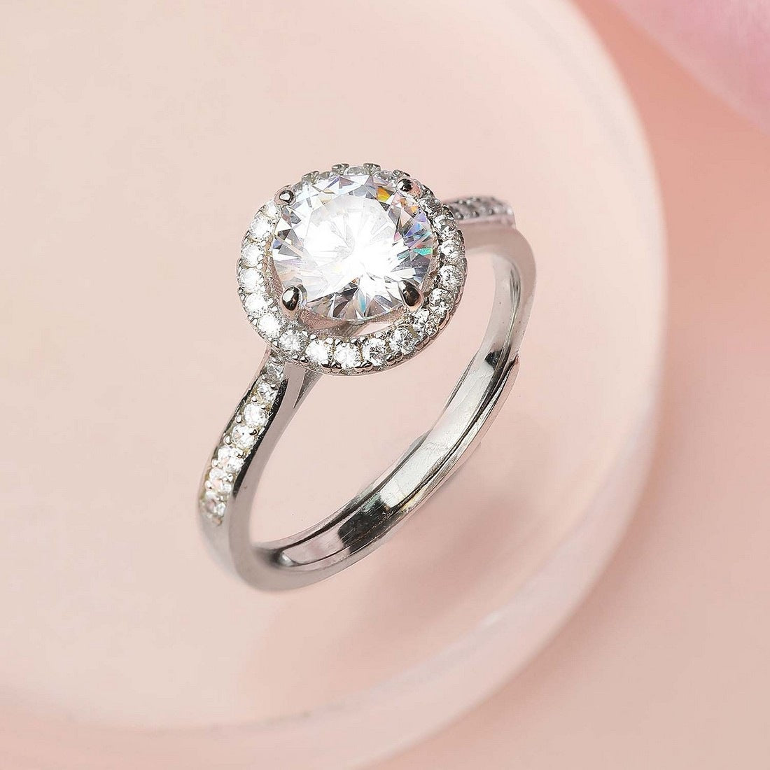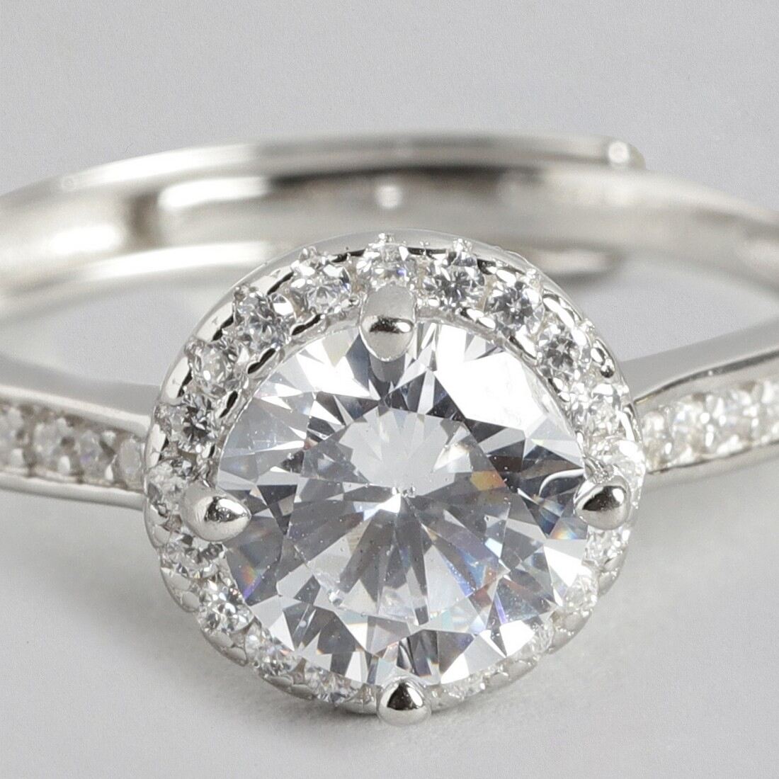Solitaire Halo 925 Silver Ring (Adjustable)