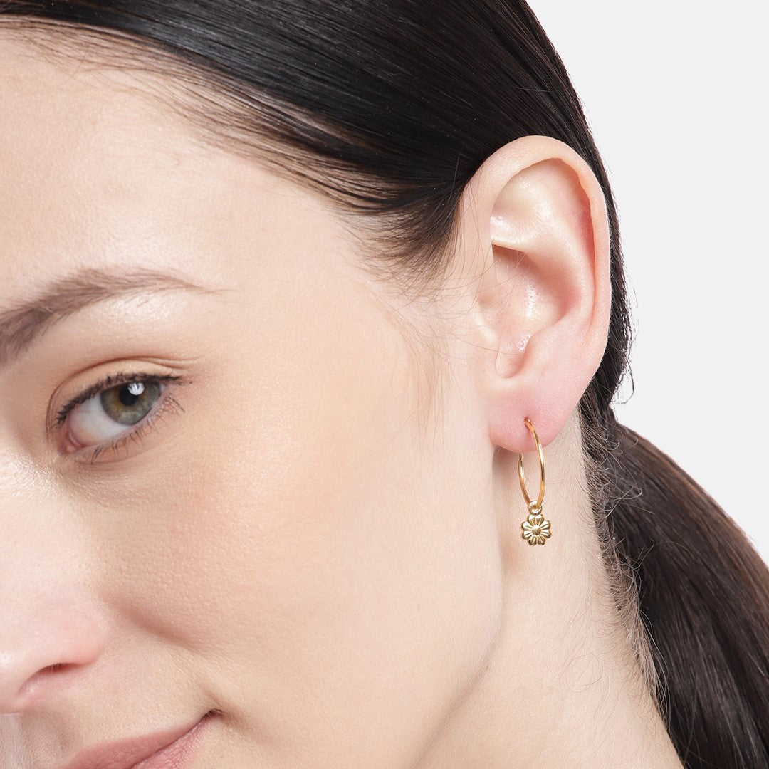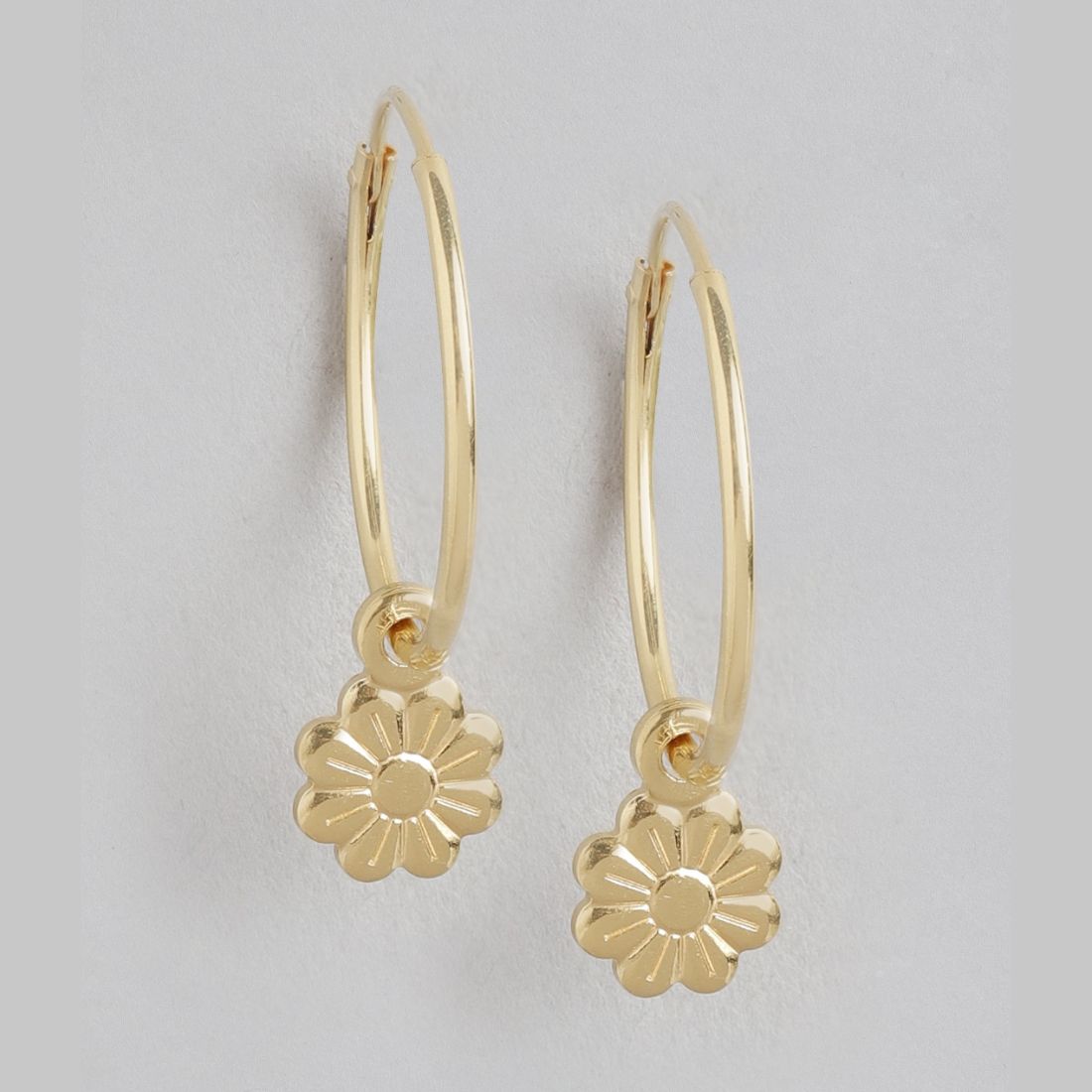 Product Description:- Embrace the beauty of nature with our Floral Cascade hoop earrings. Crafted from high-quality sterling silver and plated with radiant gold, these earrings feature delicate hoop designs adorned with a mesmerizing drop flower pendant. The intricate details and stunning craftsmanship make these earrings a standout accessory for any occasion. The gold plating adds a touch of elegance and sophistication, while the floral motif brings a fresh and feminine vibe. Elevate your style and make a statement with our Floral Cascade hoop earrings, a perfect blend of timeless charm and contemporary elegance.