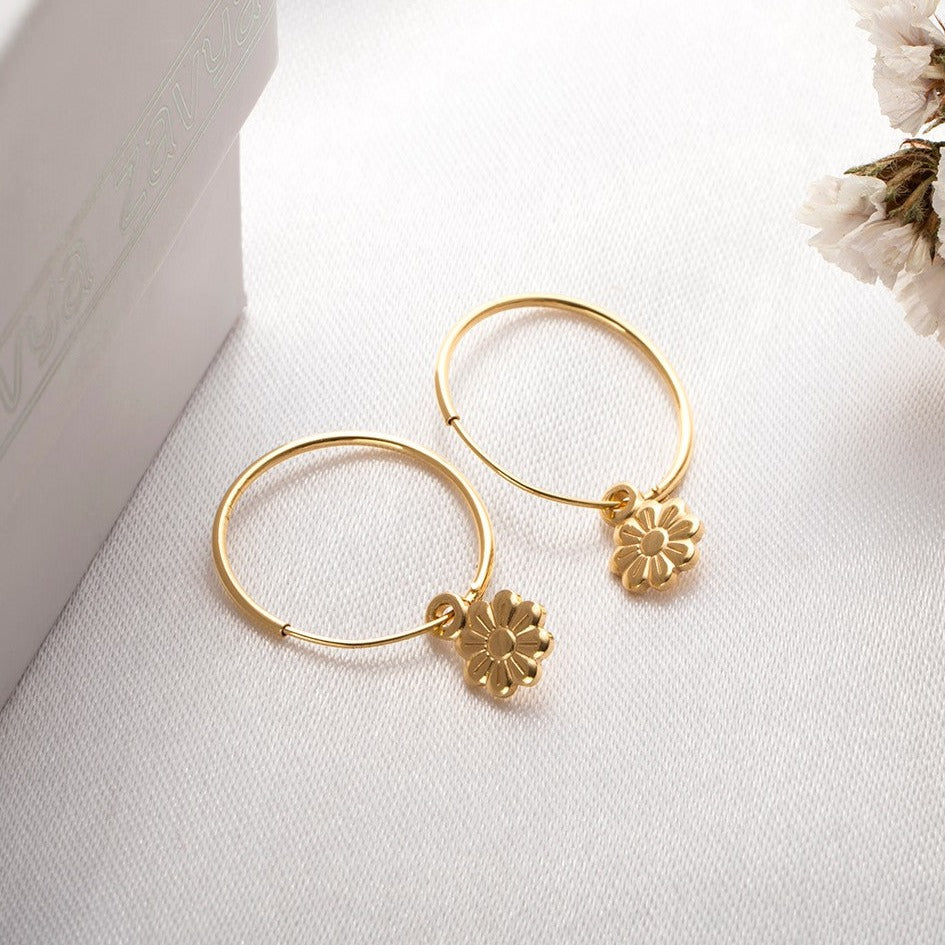 Floral Cascade Gold Plated Sterling Silver Hoop Earrings