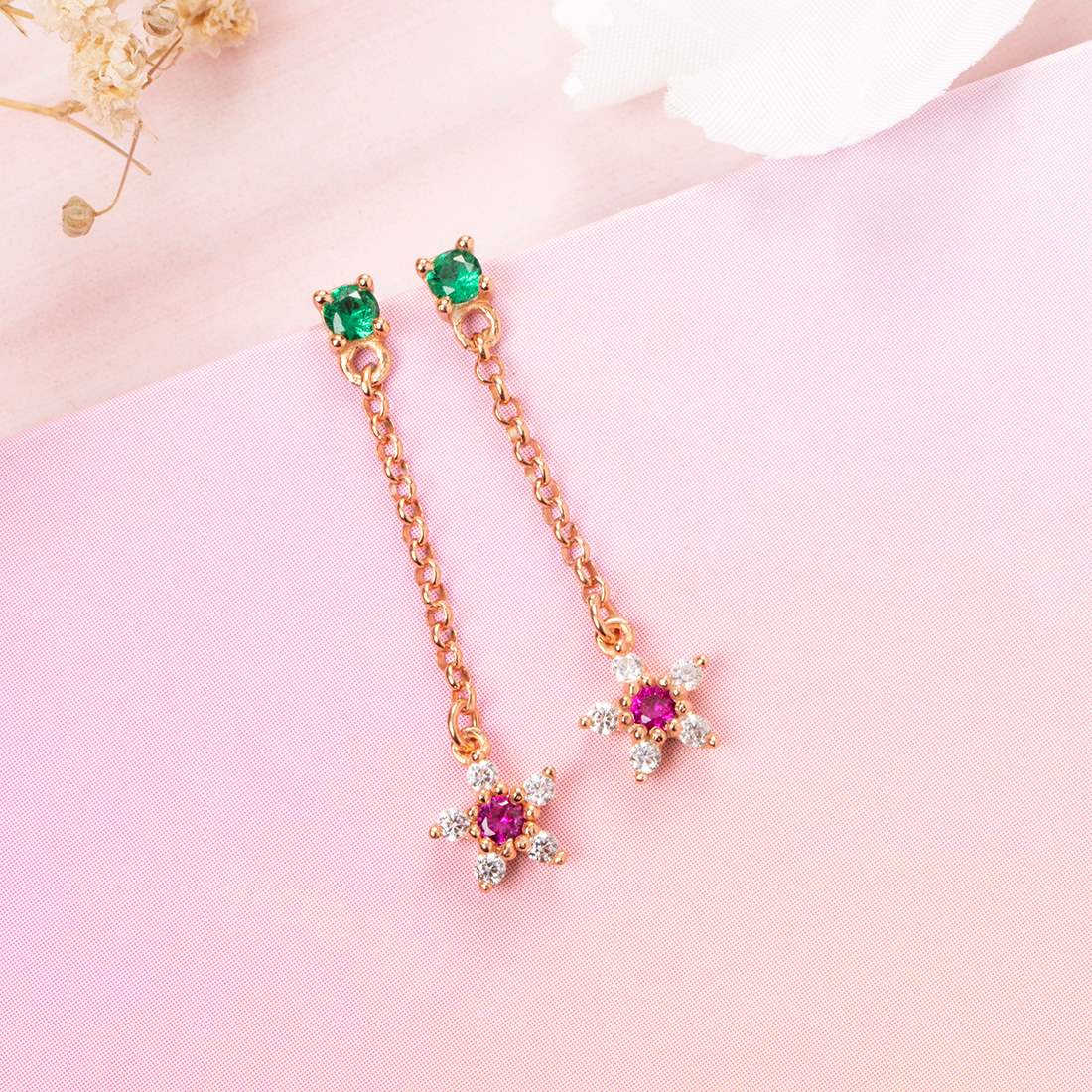 Product Description:- Introducing 'Floral Cascade,' a graceful blend of nature's beauty and modern elegance. Crafted from 925 sterling silver and plated in captivating rose gold, these earrings feature a cascading floral pattern adorned with sparkling cubic zirconia gemstones. The design captures the enchantment of a blooming garden, making it a perfect accessory for any occasion. Elevate your style with these earrings, as they add a touch of sophistication and nature's allure to your look.