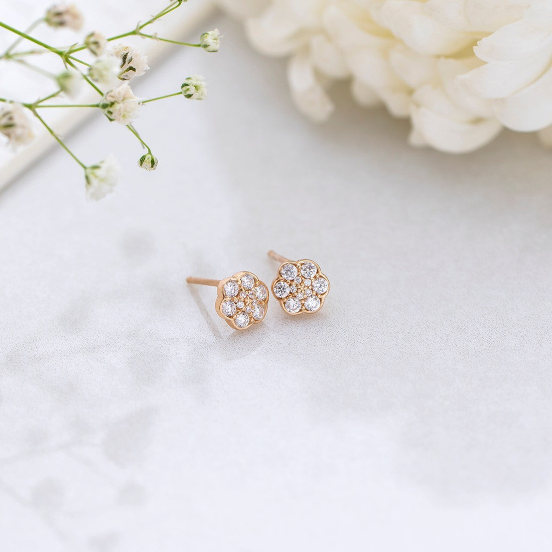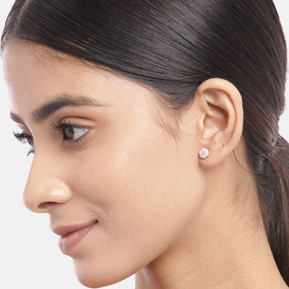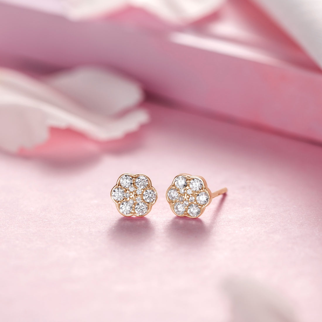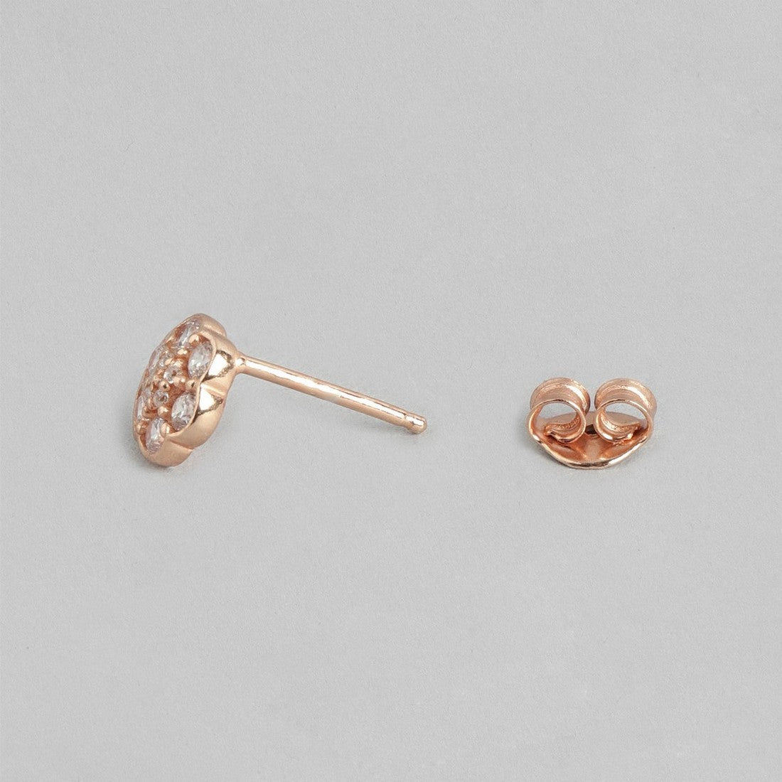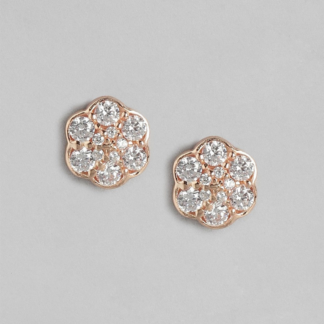 Floral CZ Rose Gold Plated 925 Sterling Silver Stud Earrings