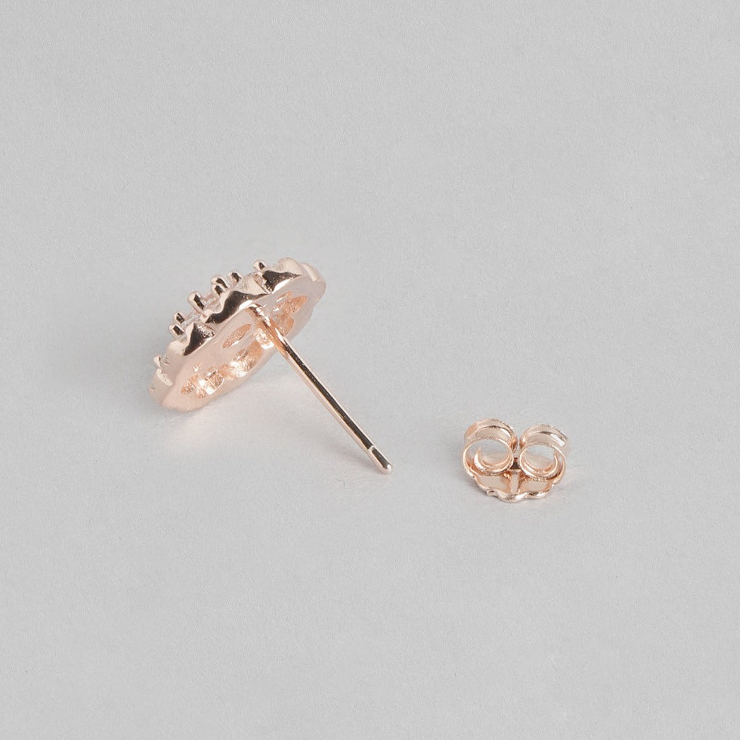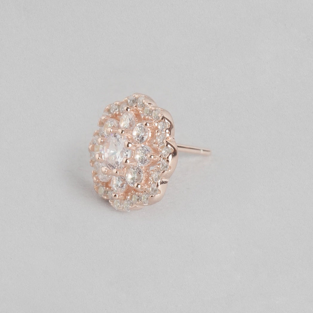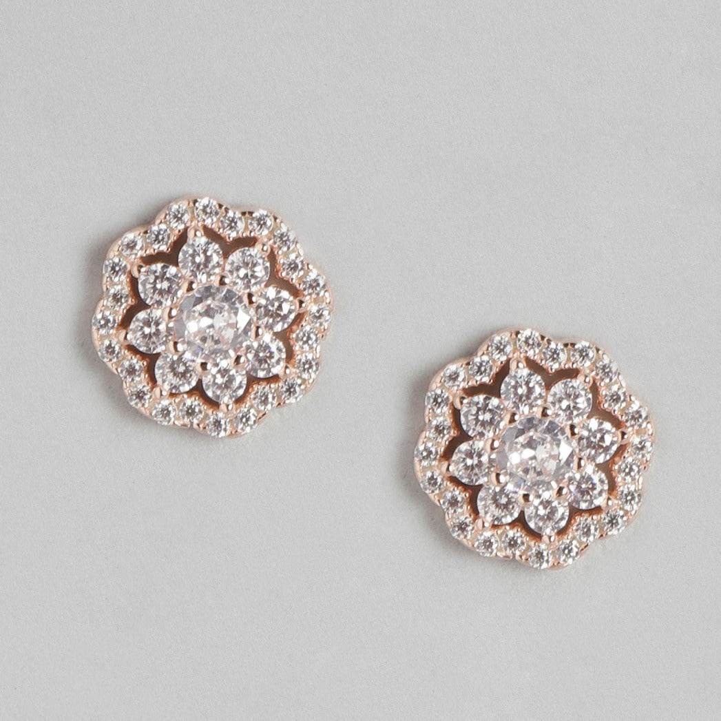 Floral CZ Studded Rose Gold 925 Sterling Silver Stud Earrings