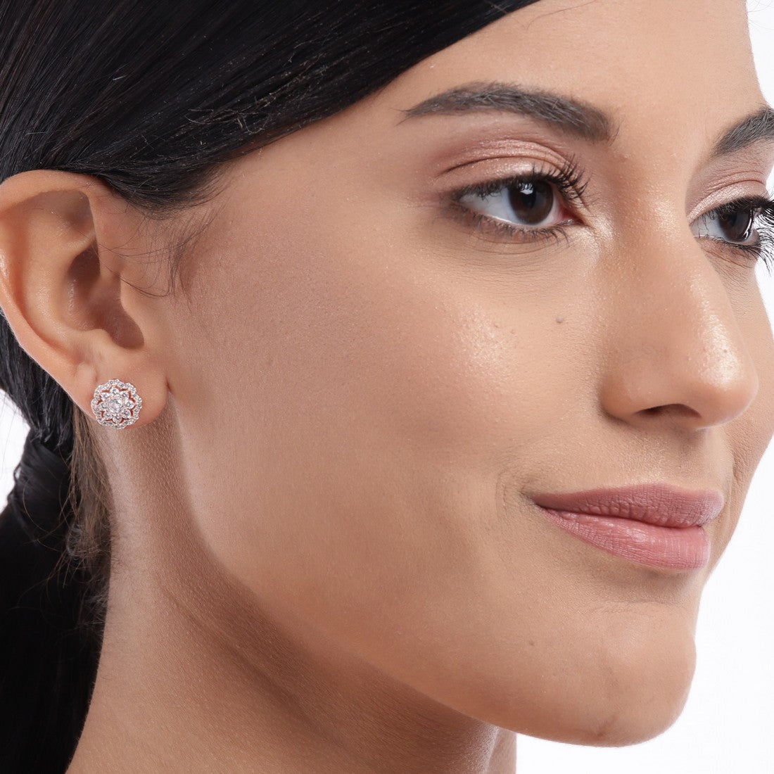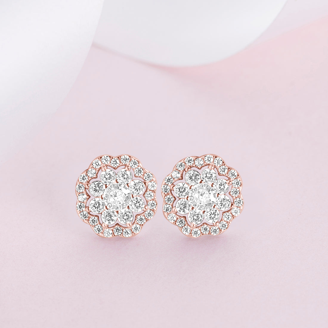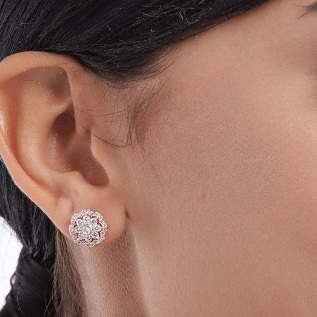 Floral CZ Studded Rose Gold 925 Sterling Silver Stud Earrings