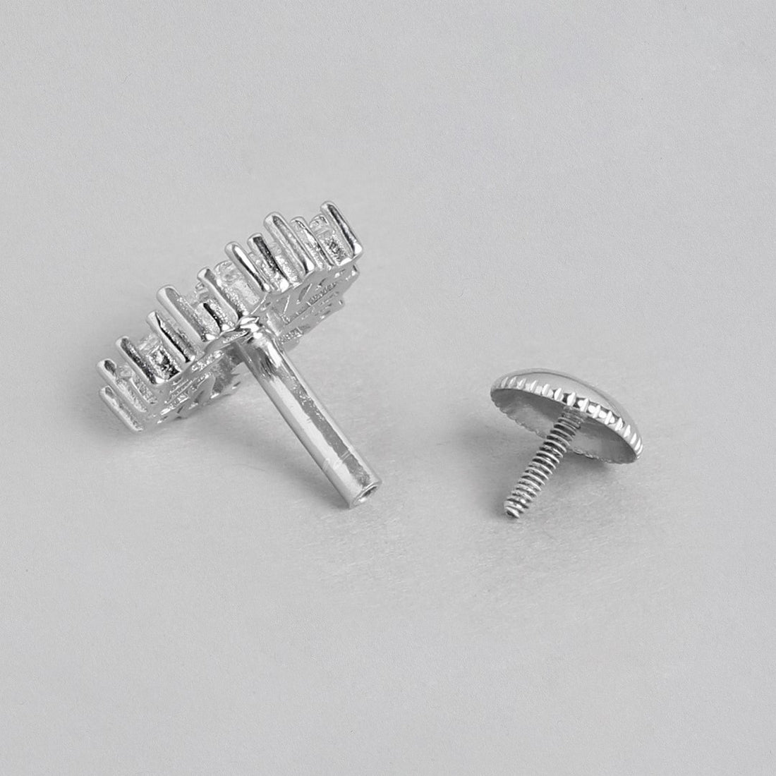 Floral Elegance Rhodium-Plated CZ 925 Sterling Silver Women's Earrings