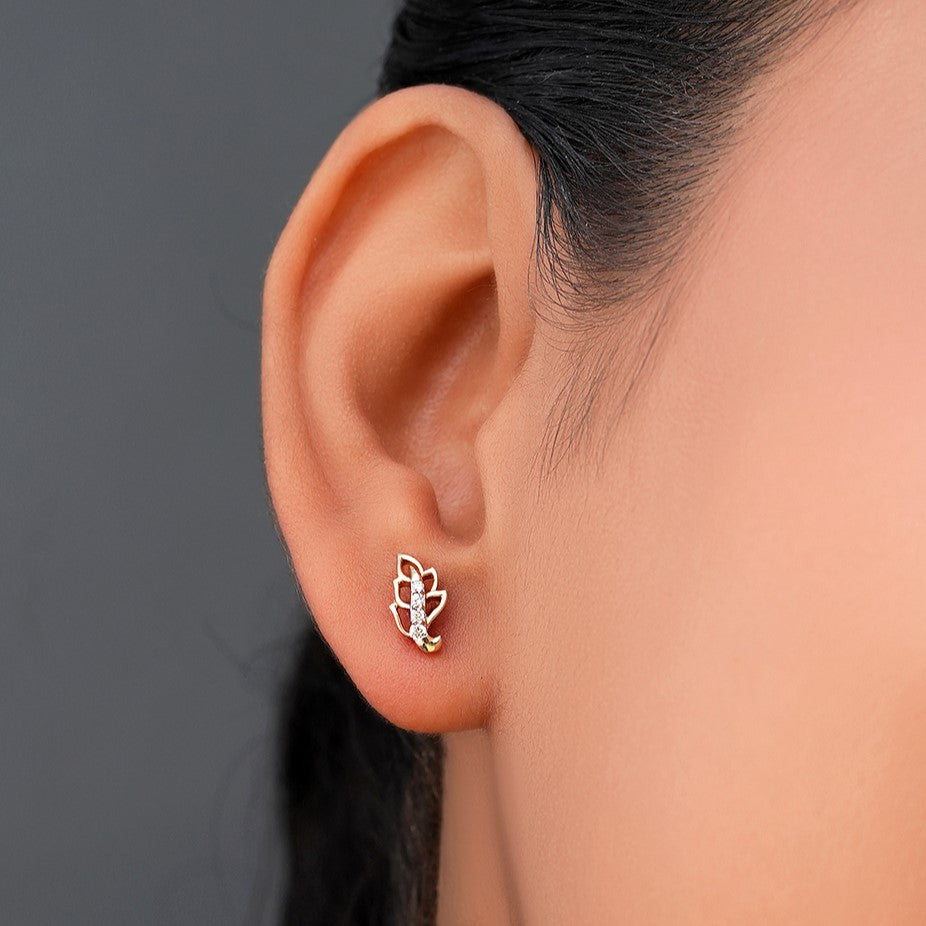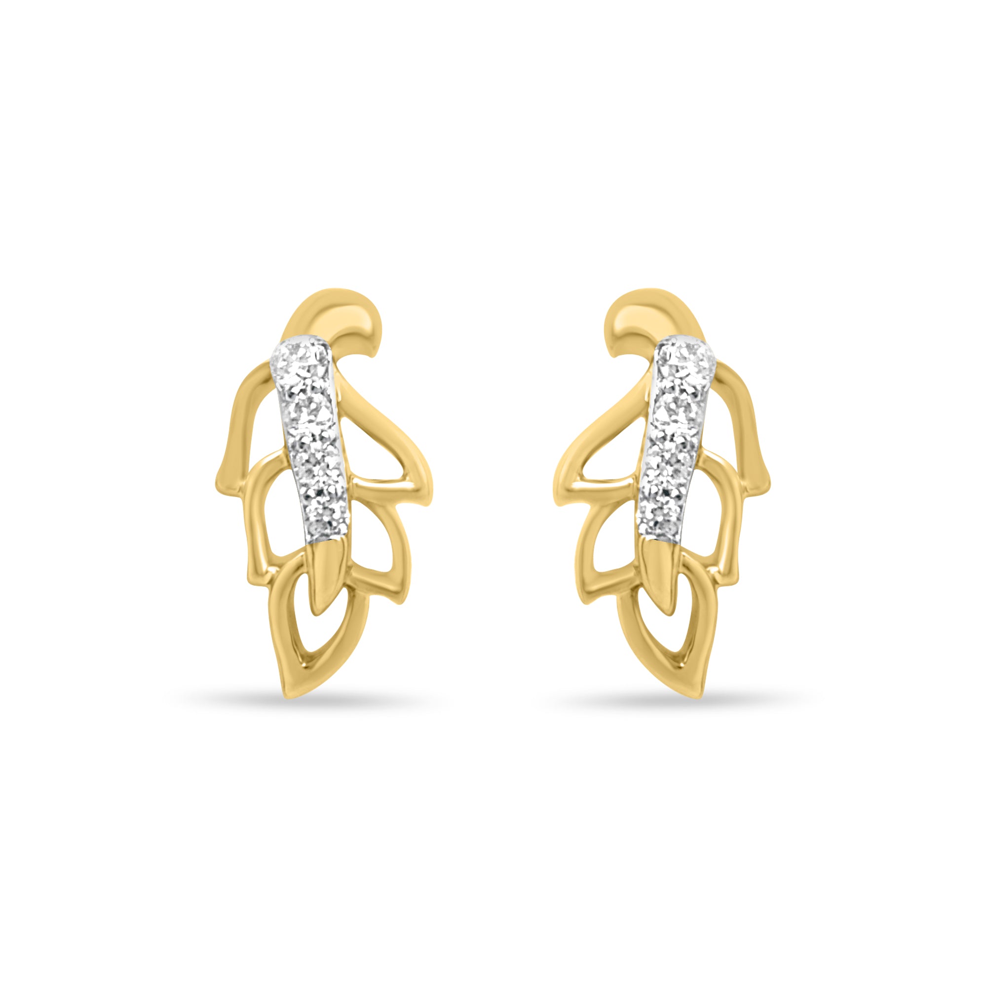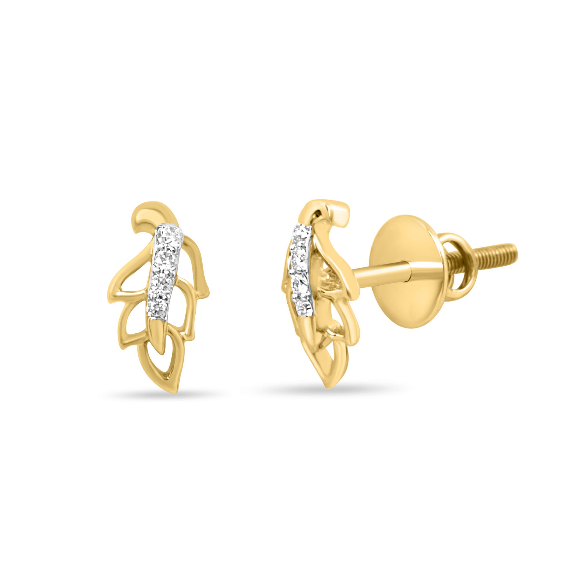 Leaf Gold Earrings with Lab-Grown Diamonds