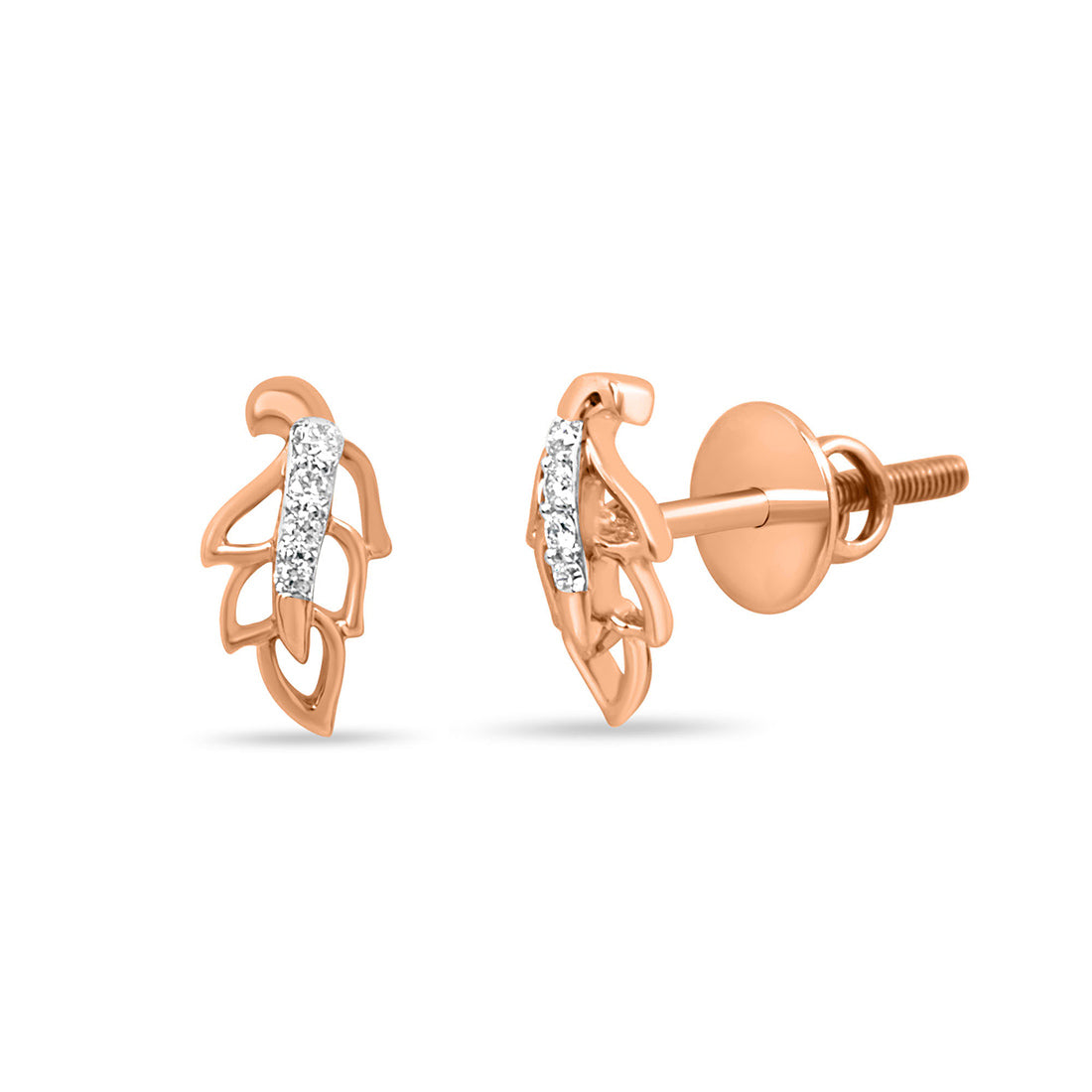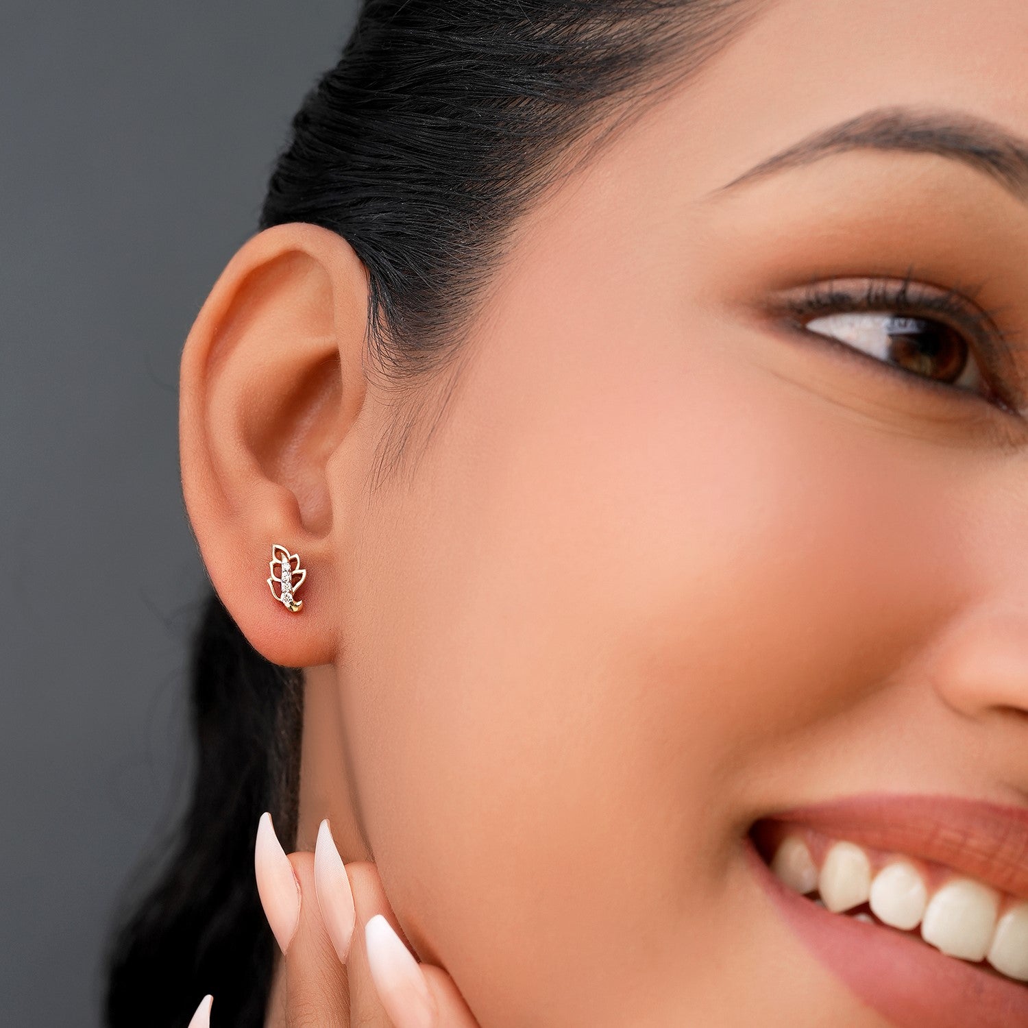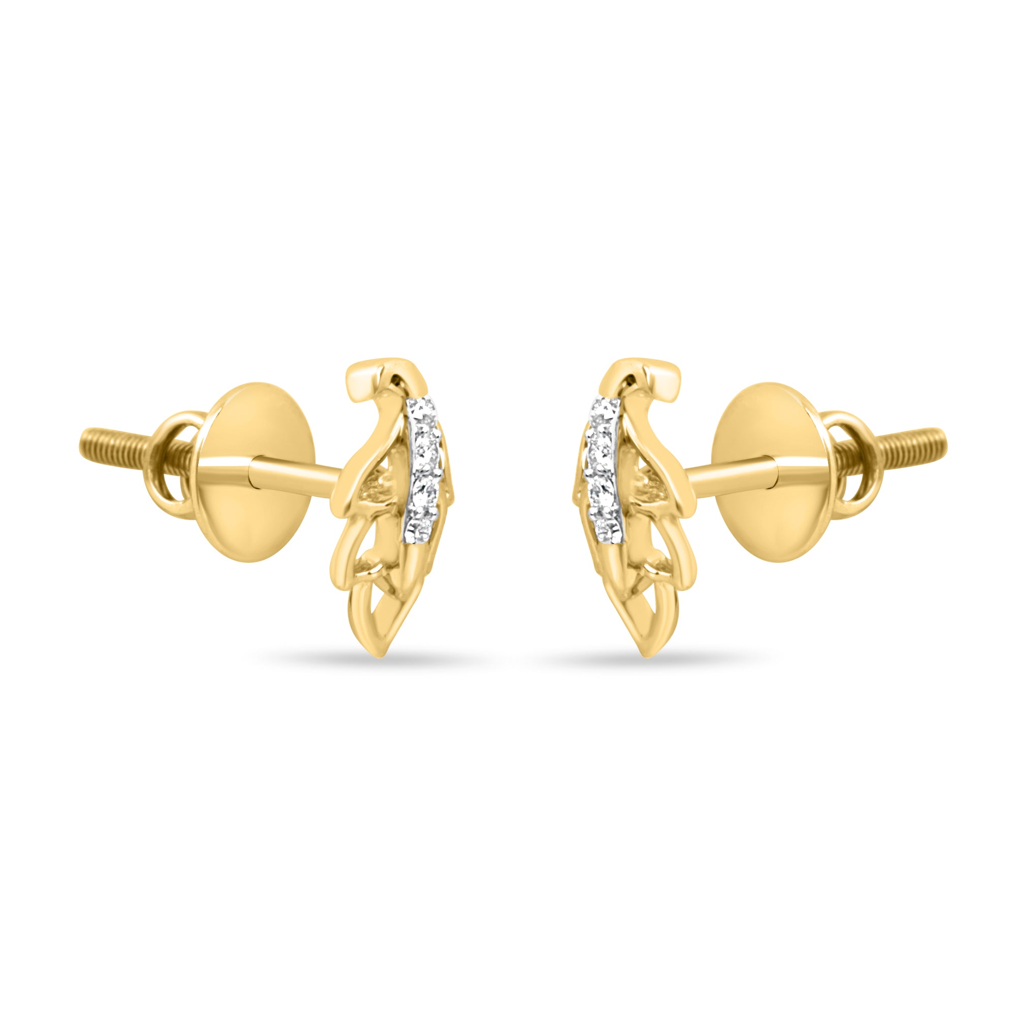 Leaf Gold Earrings with Lab-Grown Diamonds