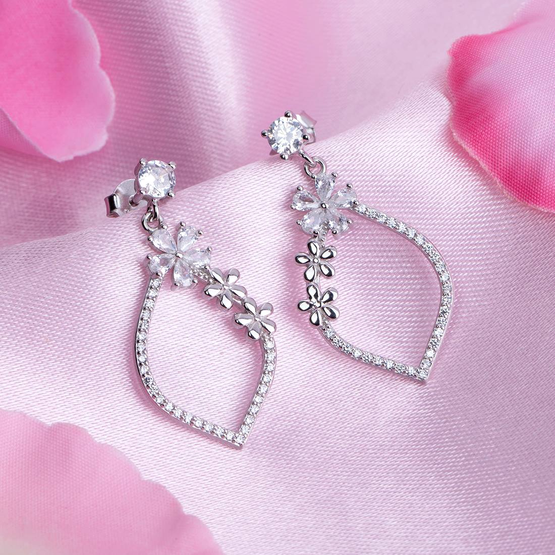 Floral Radiance Rhodium-Plated 925 Sterling Silver Drop Earrings