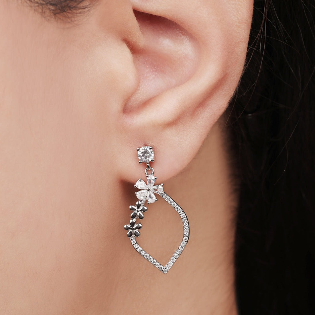 Product Description:- Embrace the beauty of nature with our Floral Radiance Earrings. Crafted from high-quality 925 Sterling Silver and plated with enduring rhodium, these earrings feature a delicate flower pattern adorned with sparkling Cubic Zirconia. The result is a stunning blend of sophistication and natural allure, making these earrings the perfect accessory for adding a touch of glamour to any ensemble.