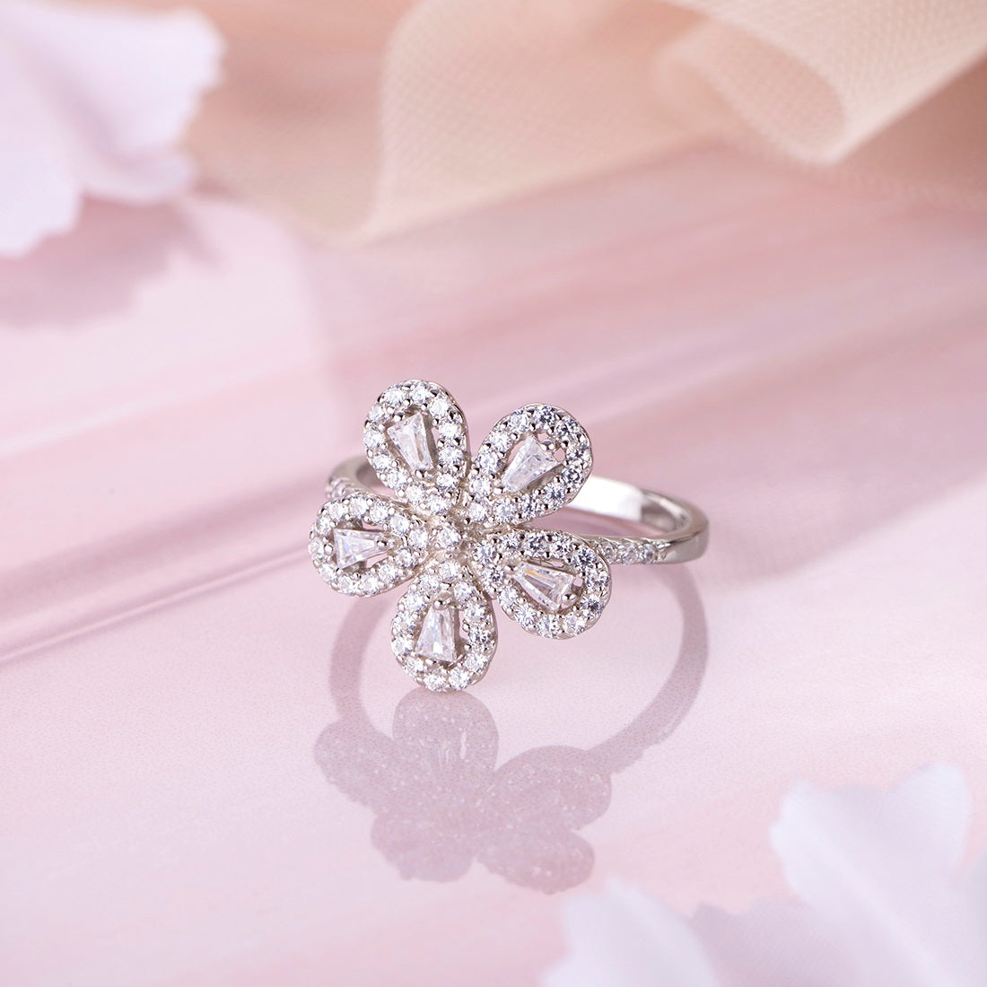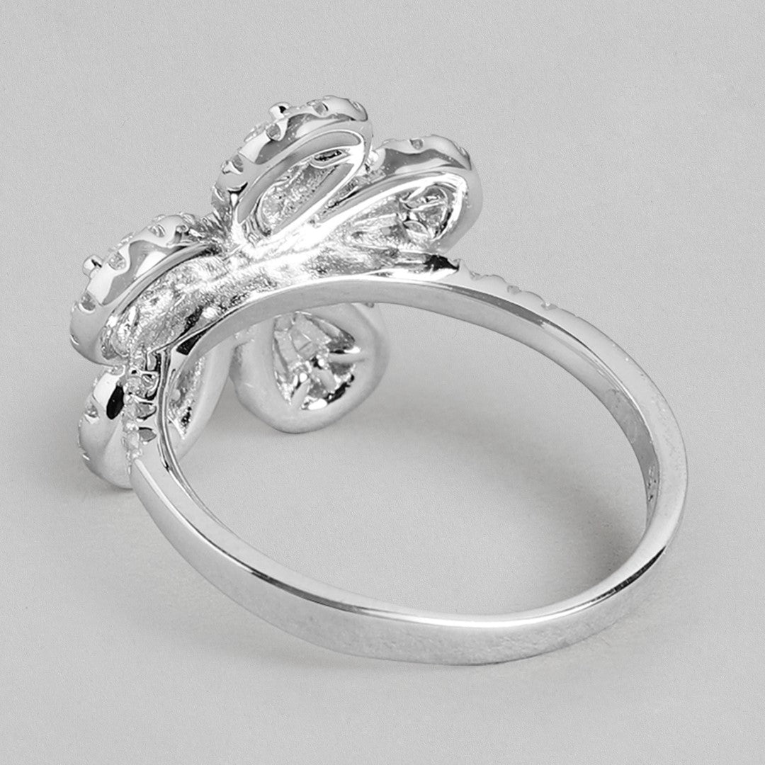 Floral Radiance: Rhodium Plated 925 Sterling Silver Ring for Her (Onesize)