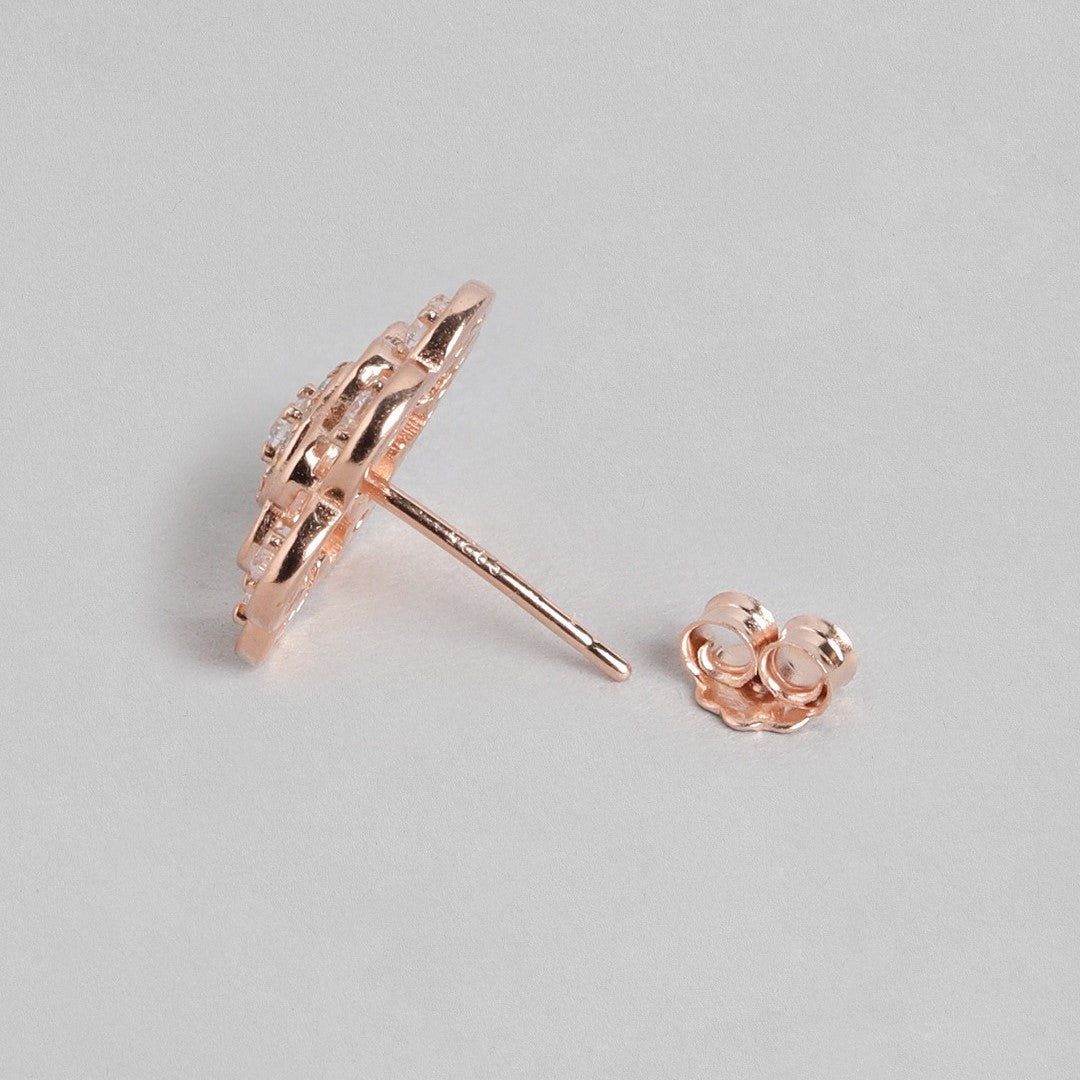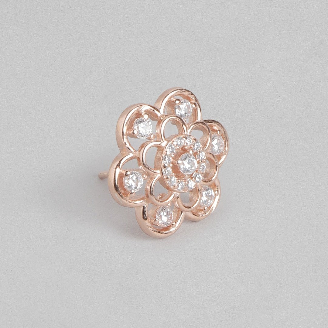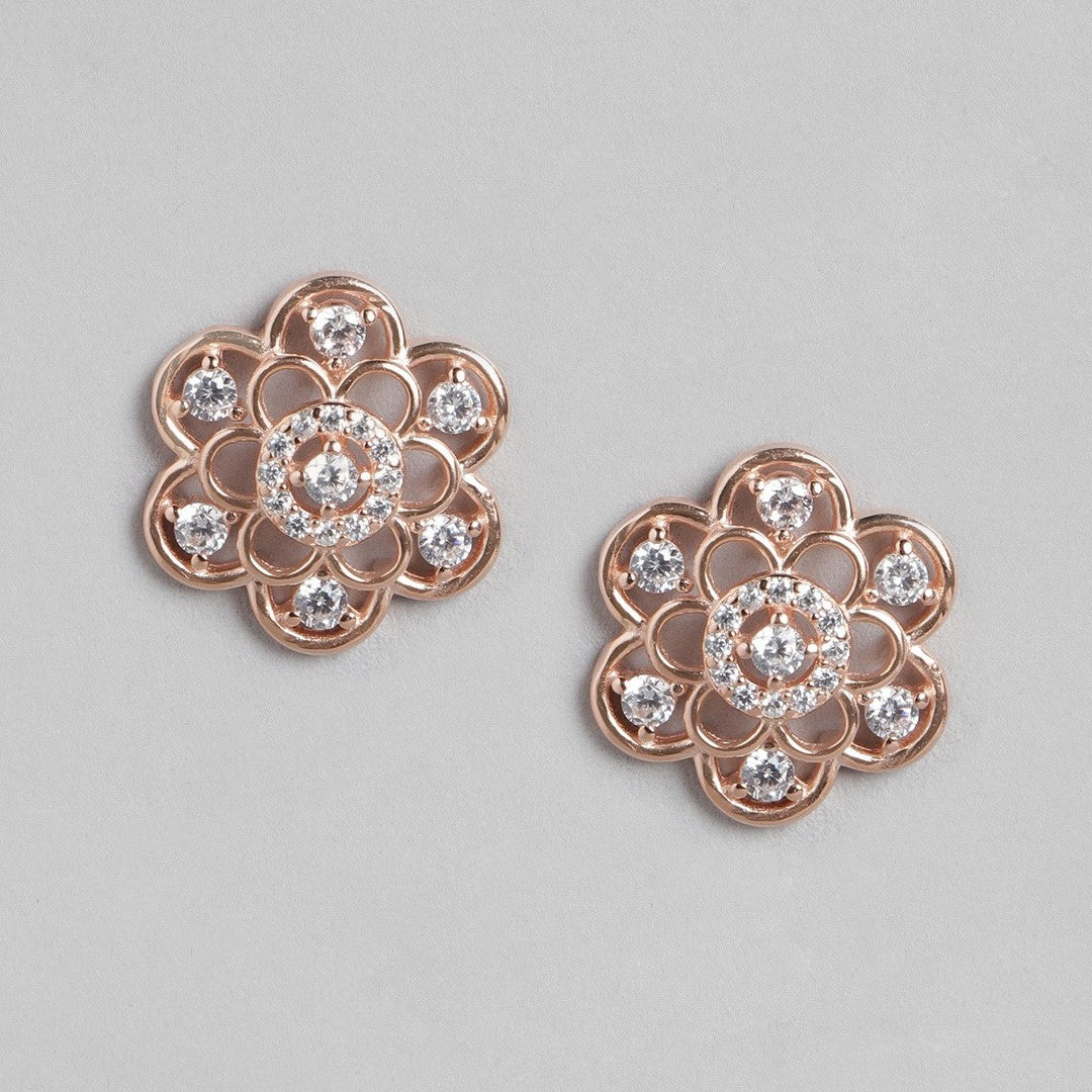 Floral Radiance Rose Gold-Plated Cubic Zirconia 925 Sterling Silver Jewelry Set