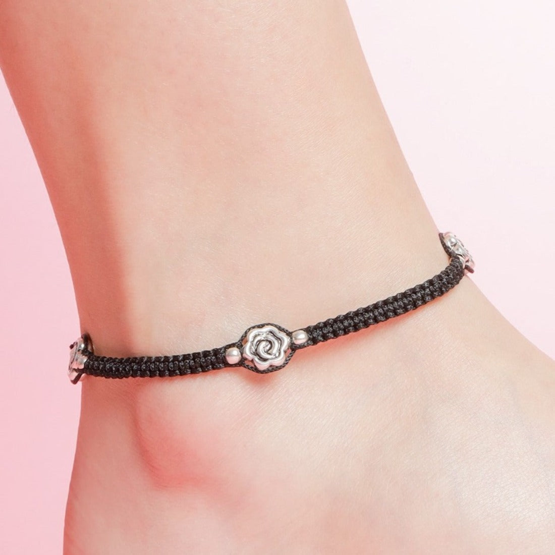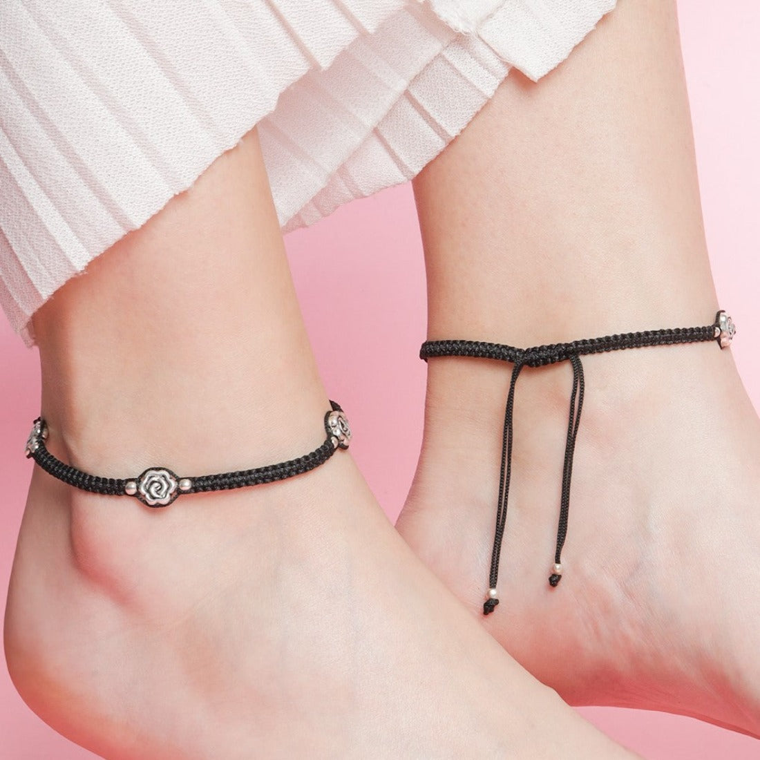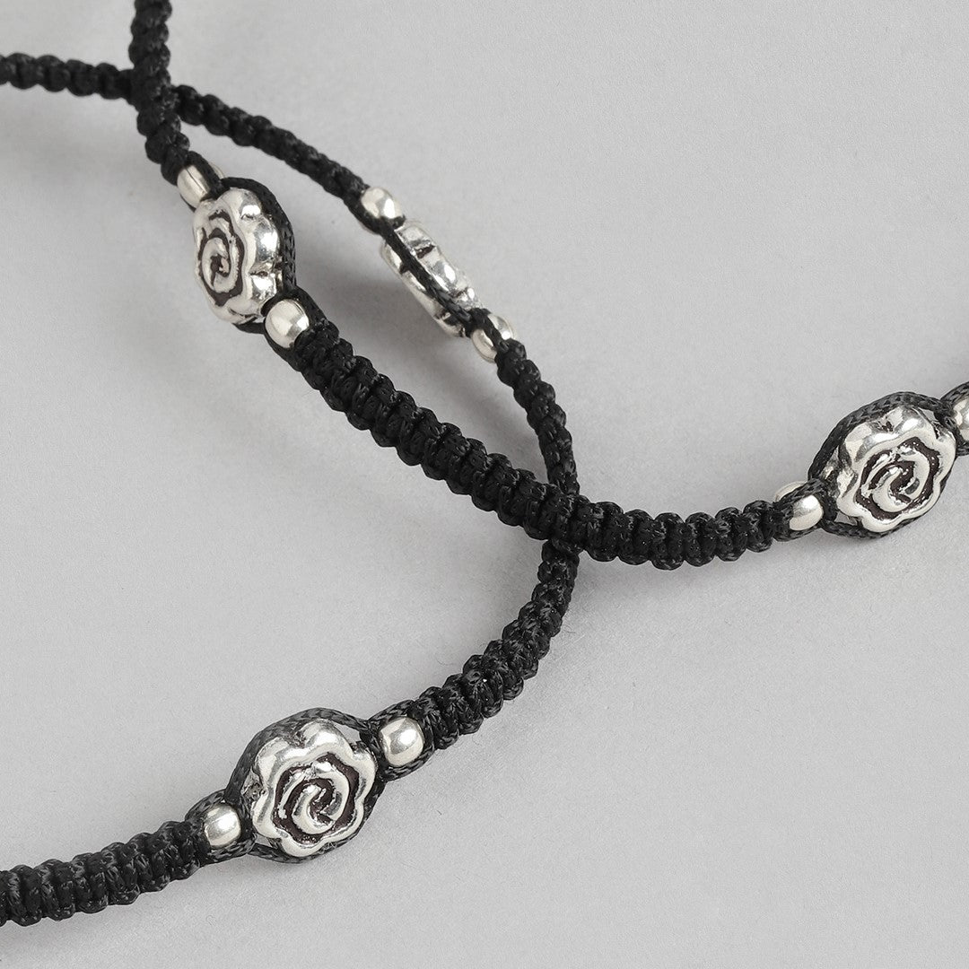 Floral Rhodium Plated 925 Sterling Silver Thread Anklet