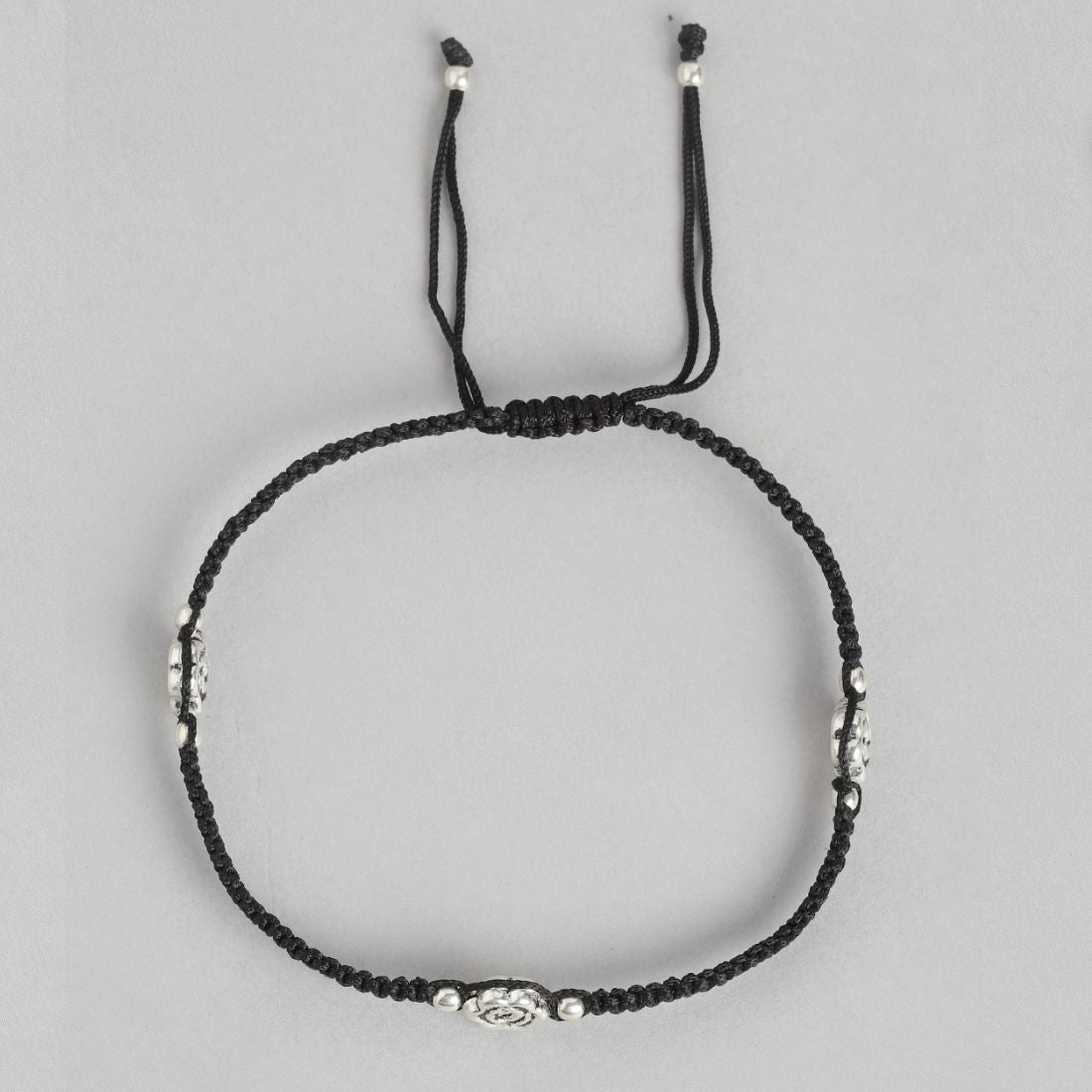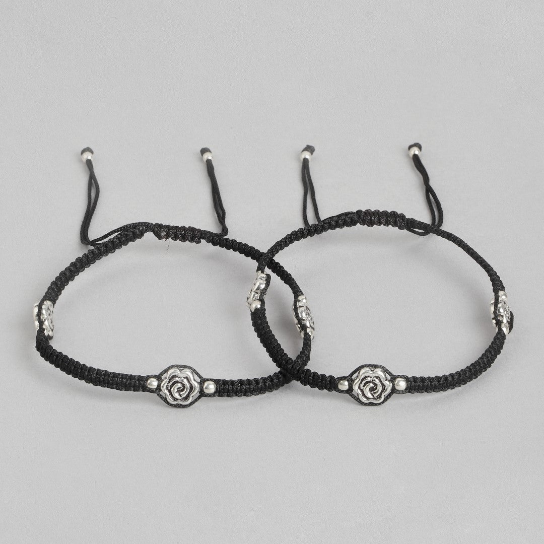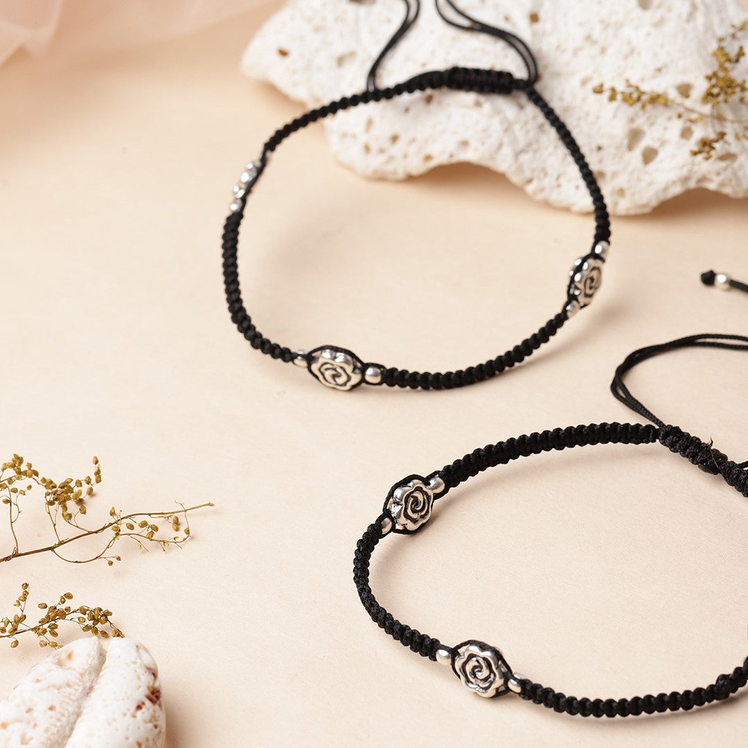 Floral Rhodium Plated 925 Sterling Silver Thread Anklet